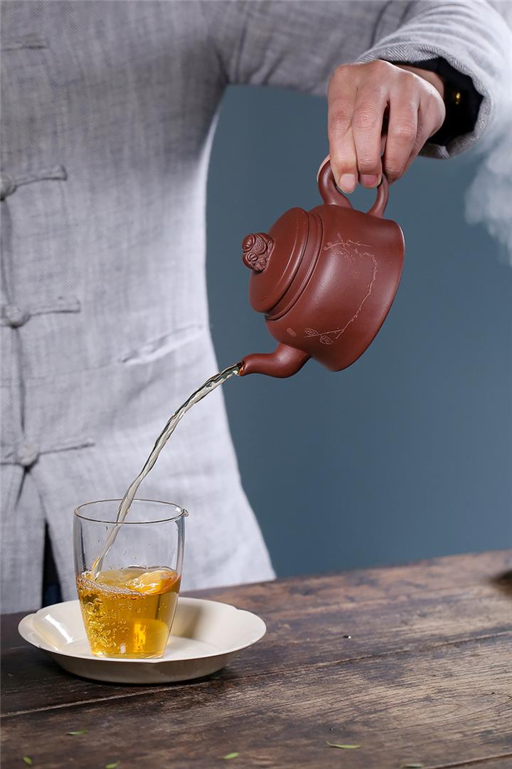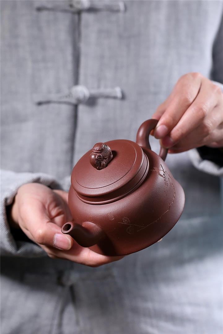 純全手工紫砂壺刻繪紅皮龍西施壺POT4071