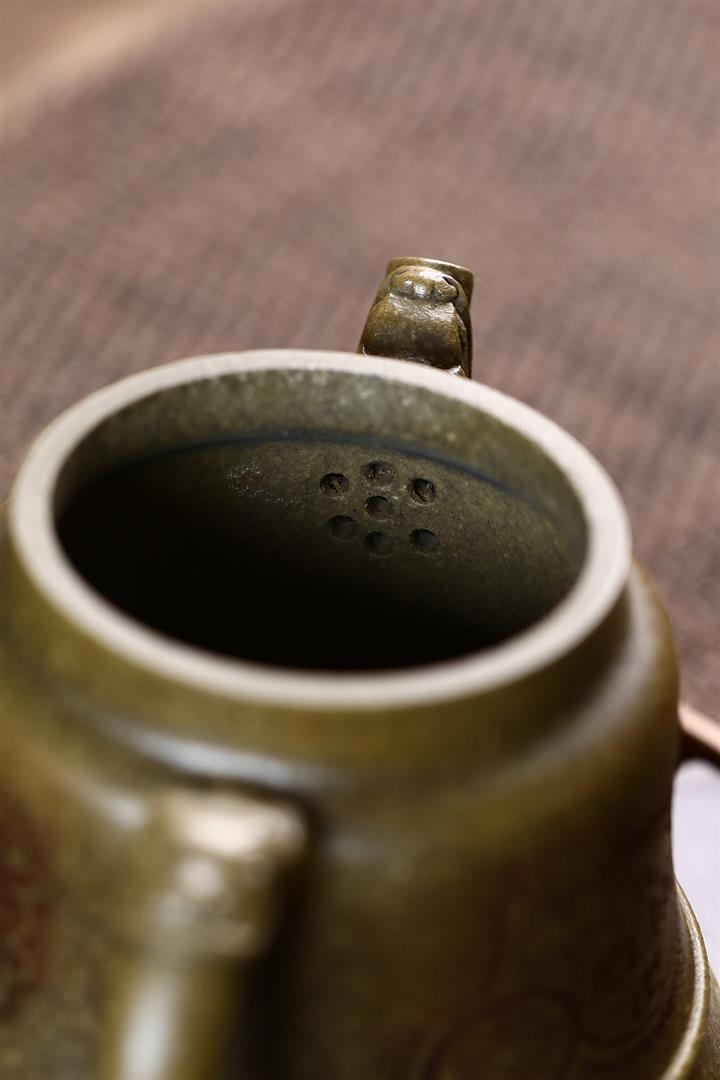 原礦綠泥手工刻繪茶壺POT4164