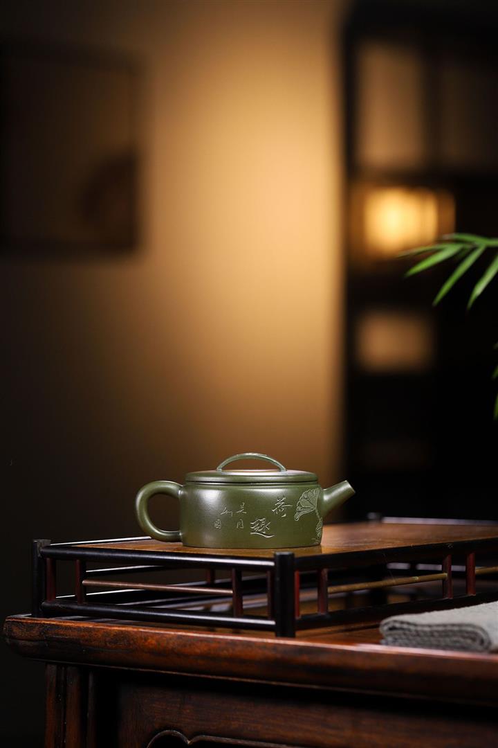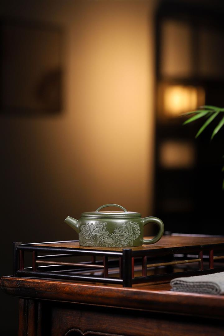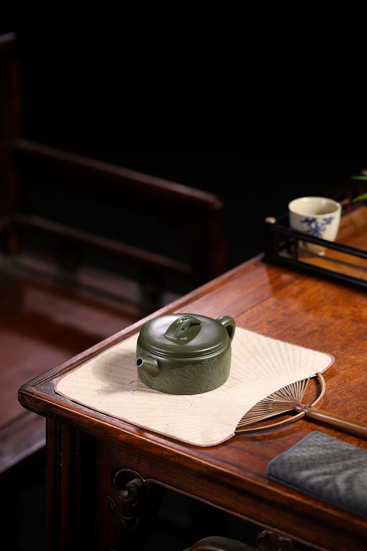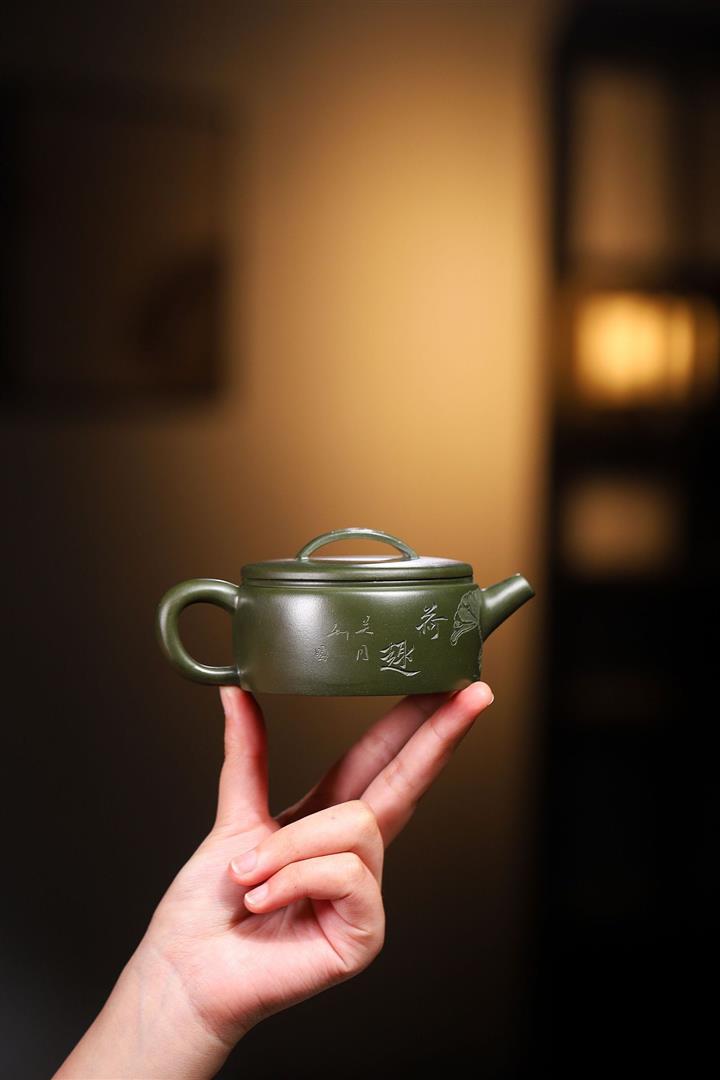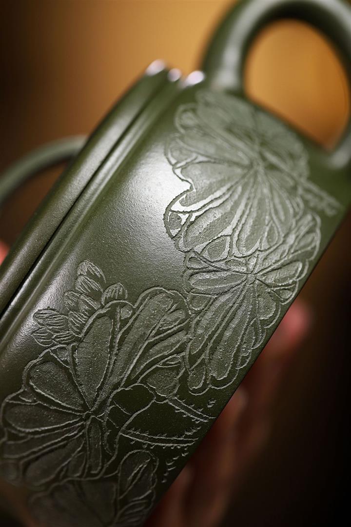 原礦綠泥手工刻繪茶壺POT4164