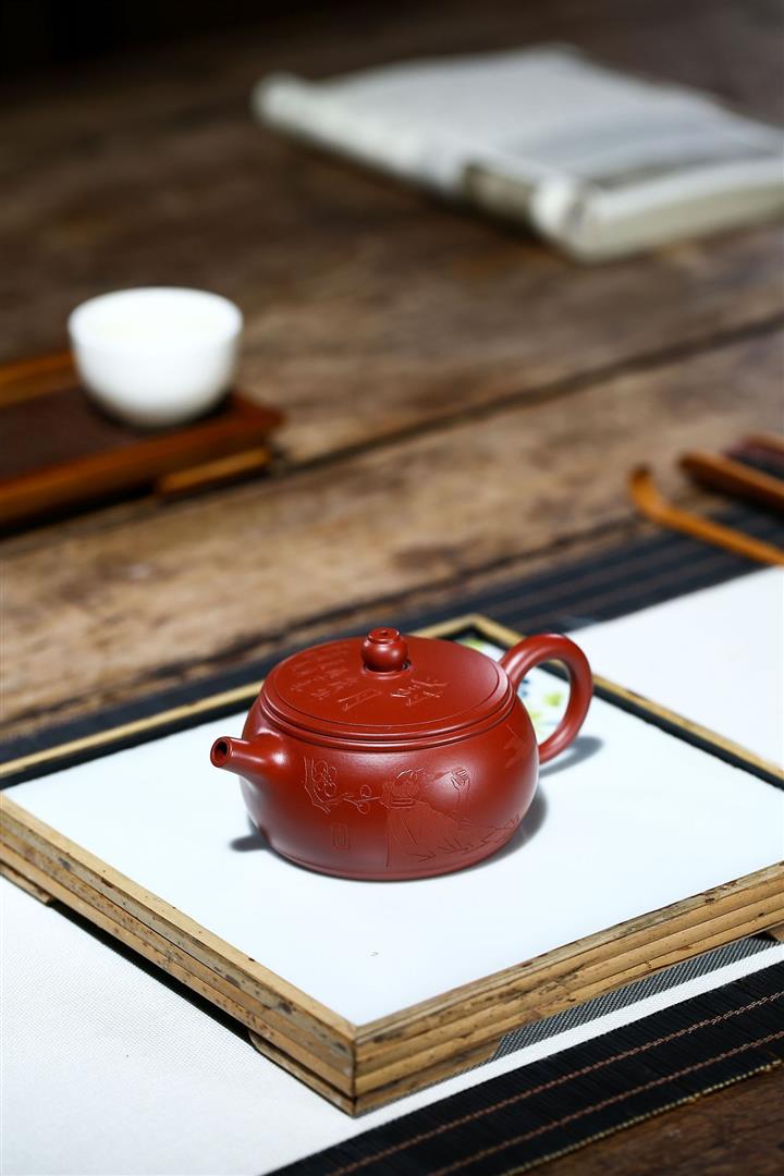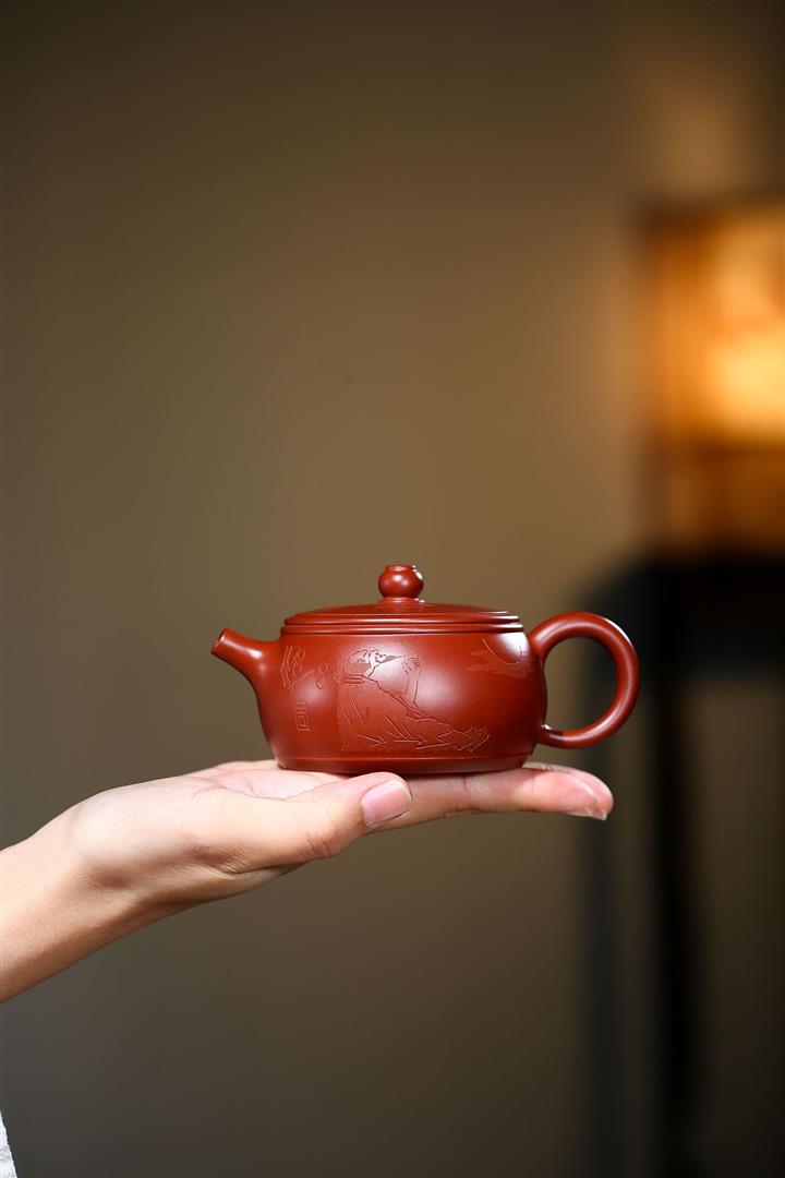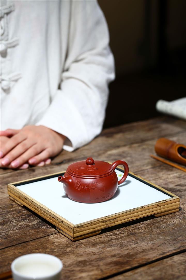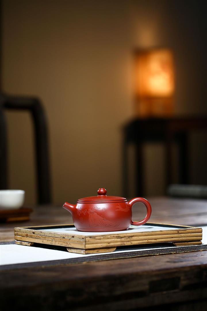 原礦大紅袍卡蓋刻繪茶緣壺POT4165