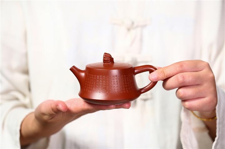 原礦紫泥全半手工刻字漢瓦壺POT4198