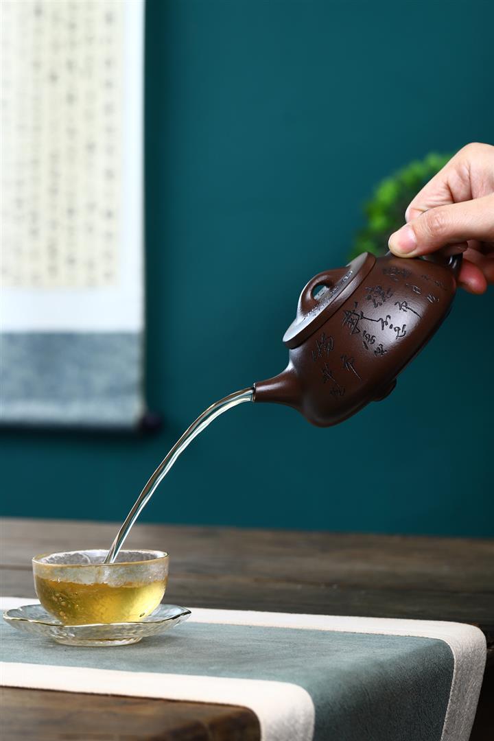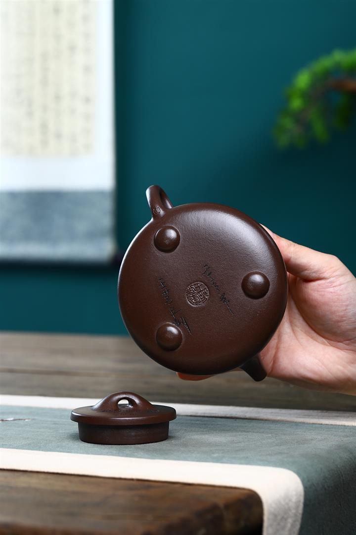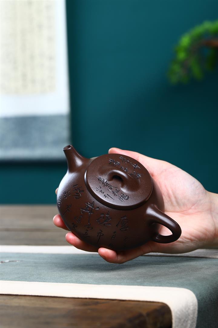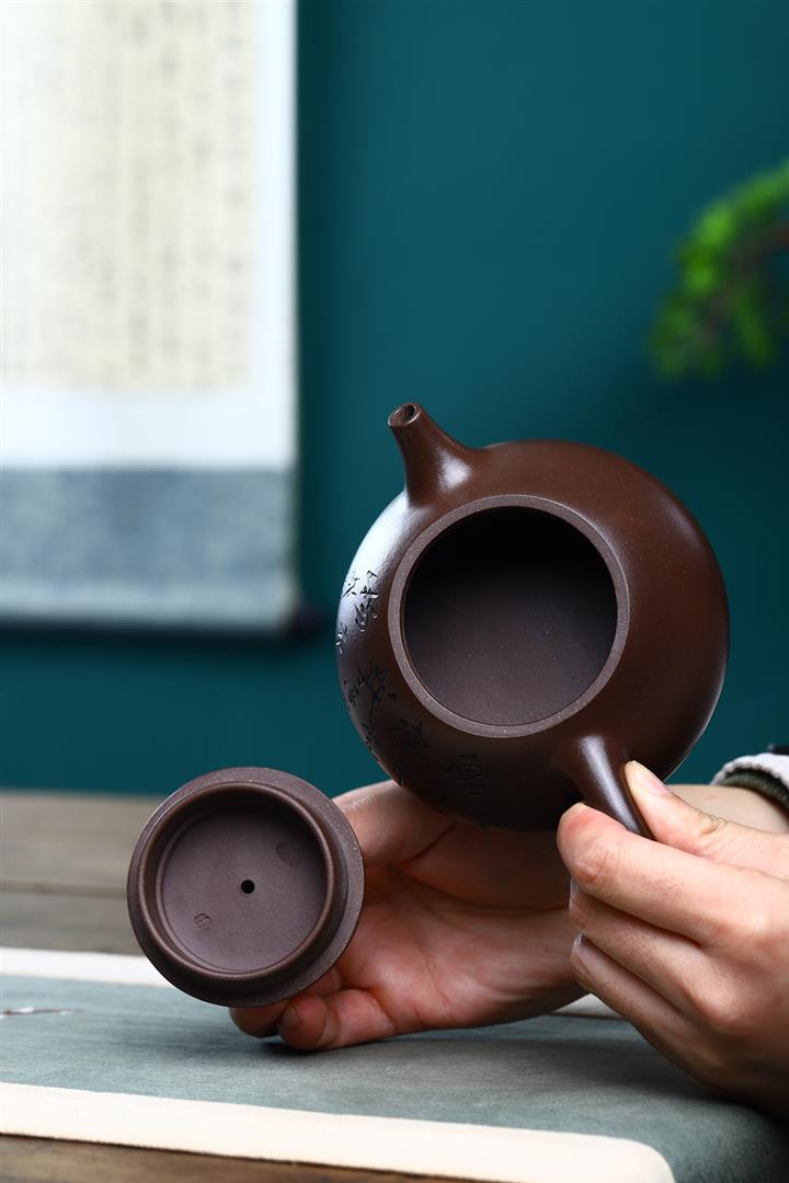紫砂壺名家老紫泥刻繪周盤壺POT4196