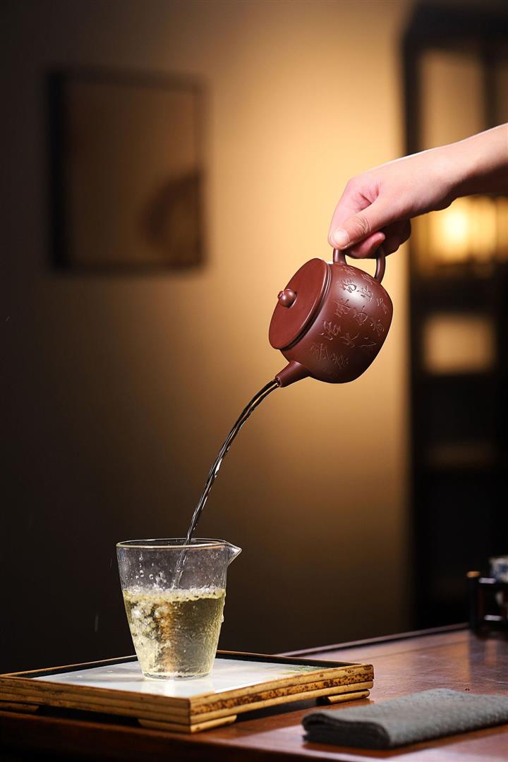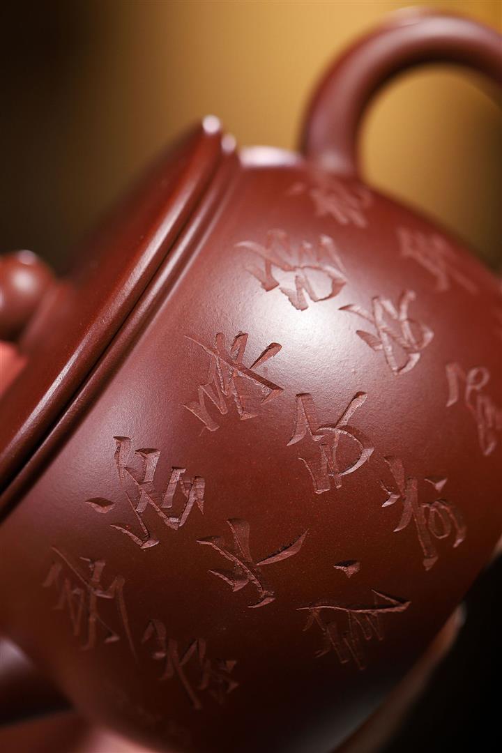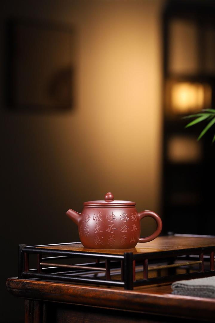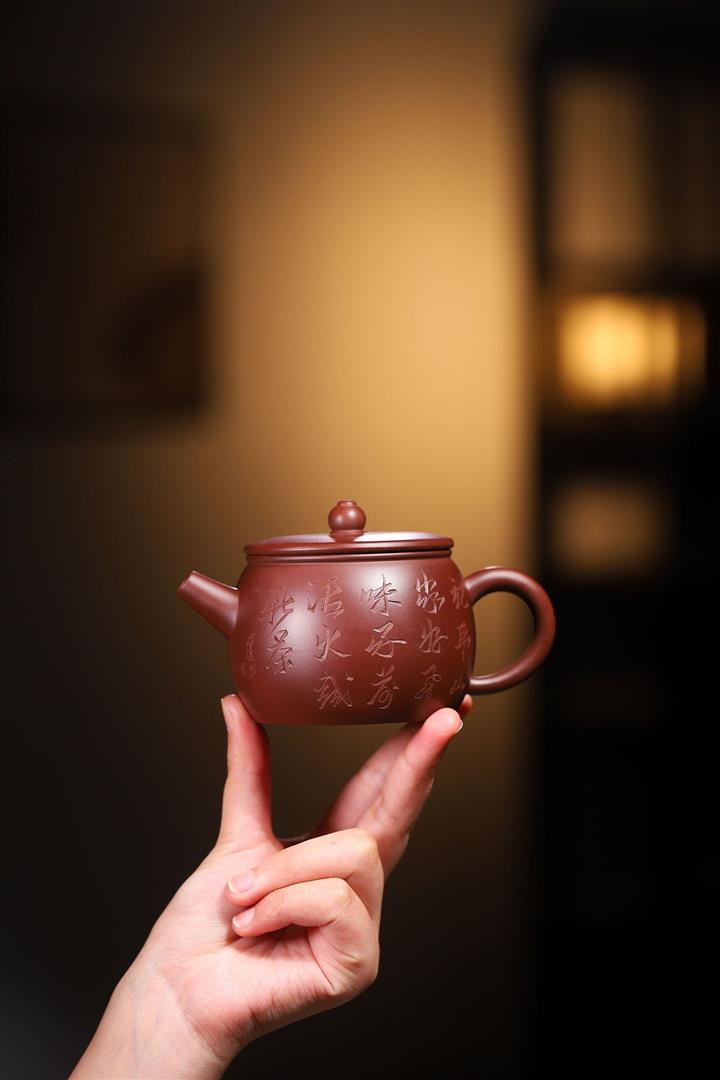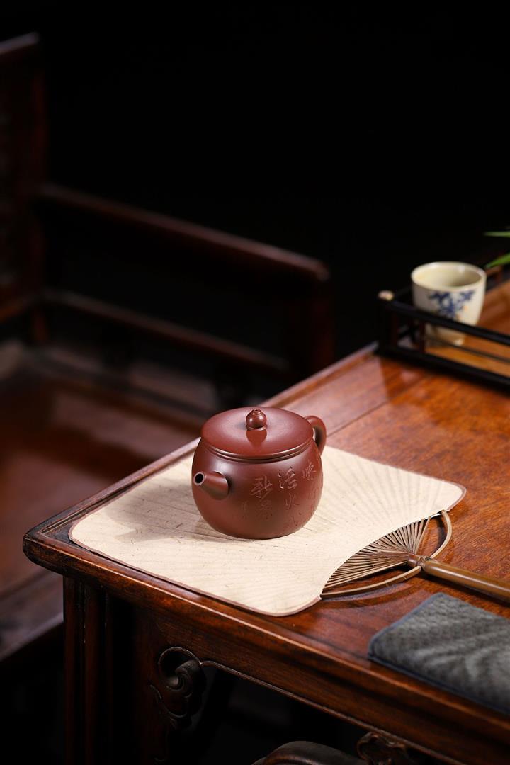 紫砂壺名家老紫泥刻繪周盤壺POT4196