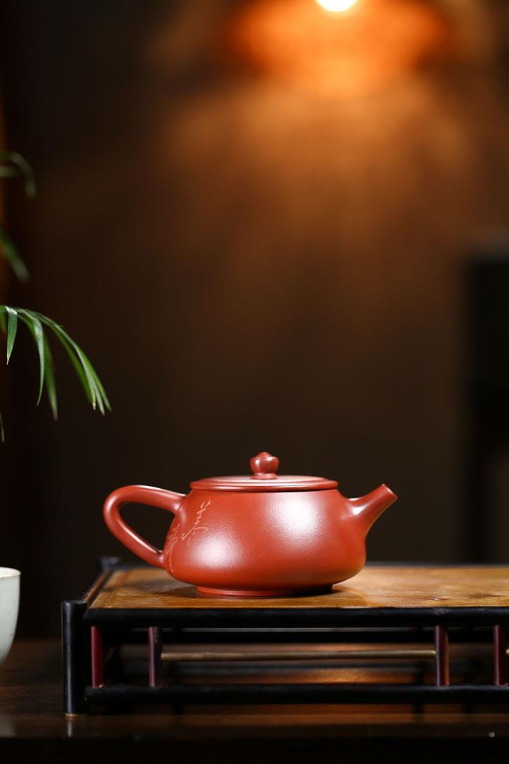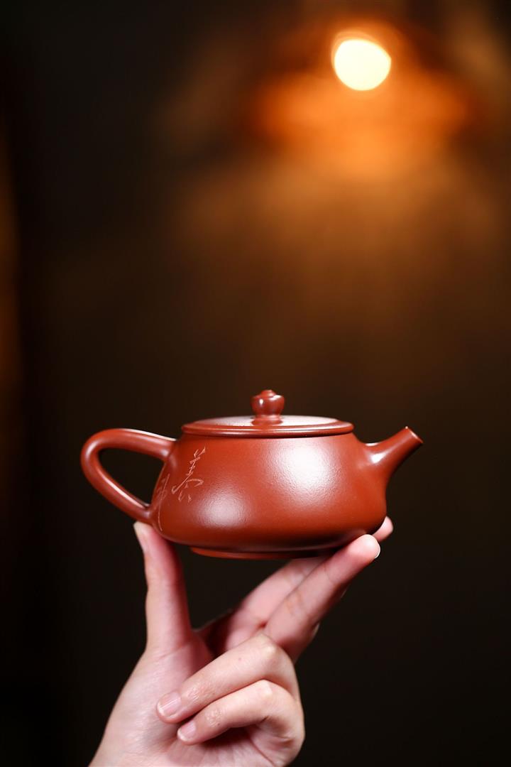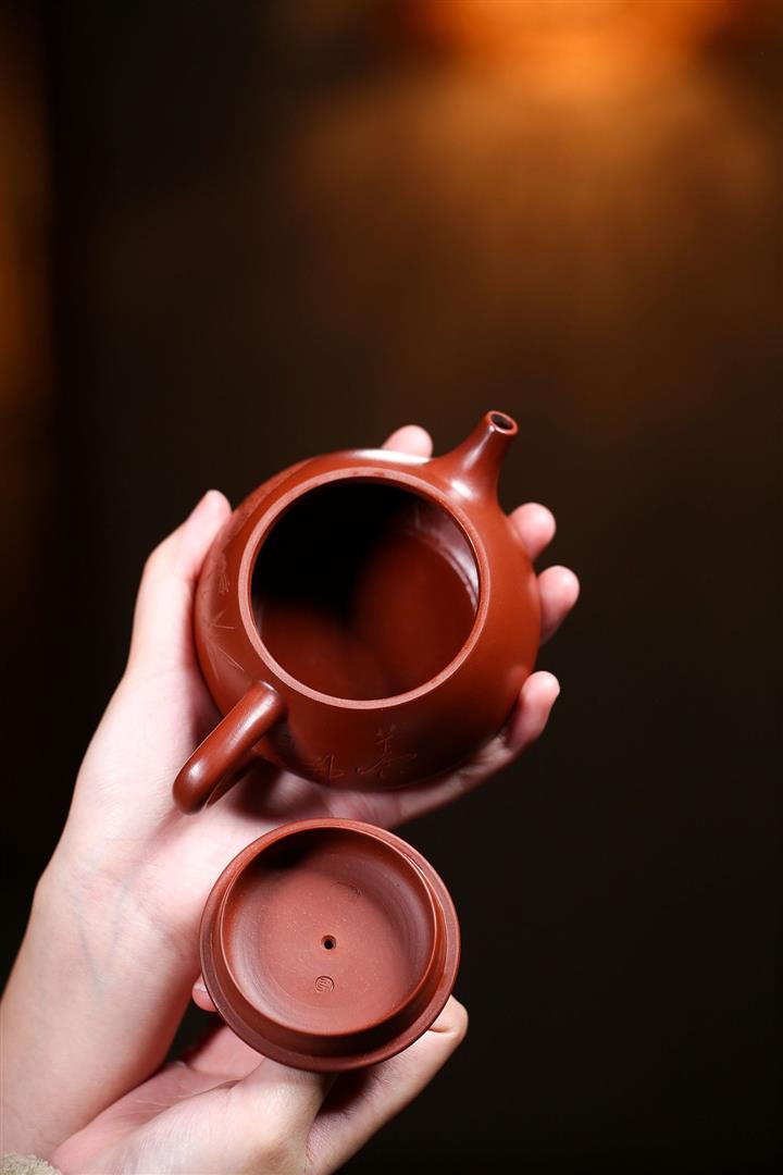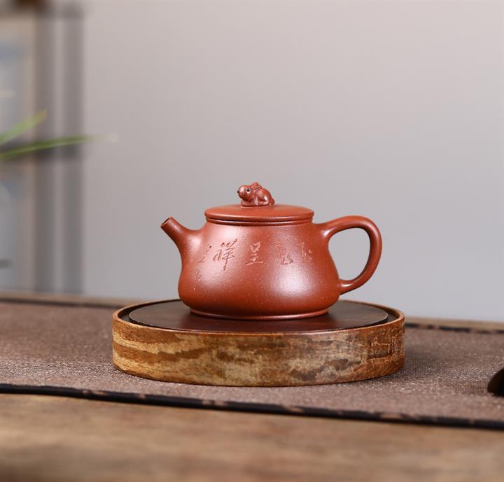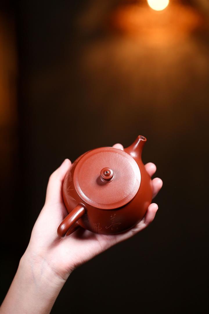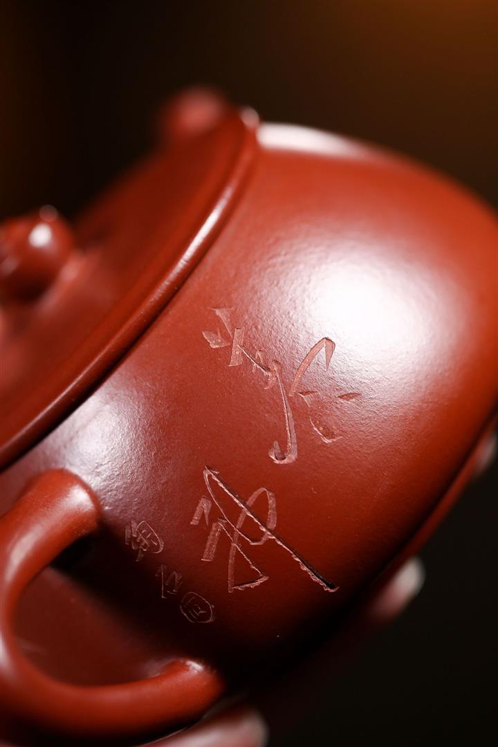 紫砂壺名家老紫泥刻繪周盤壺POT4196