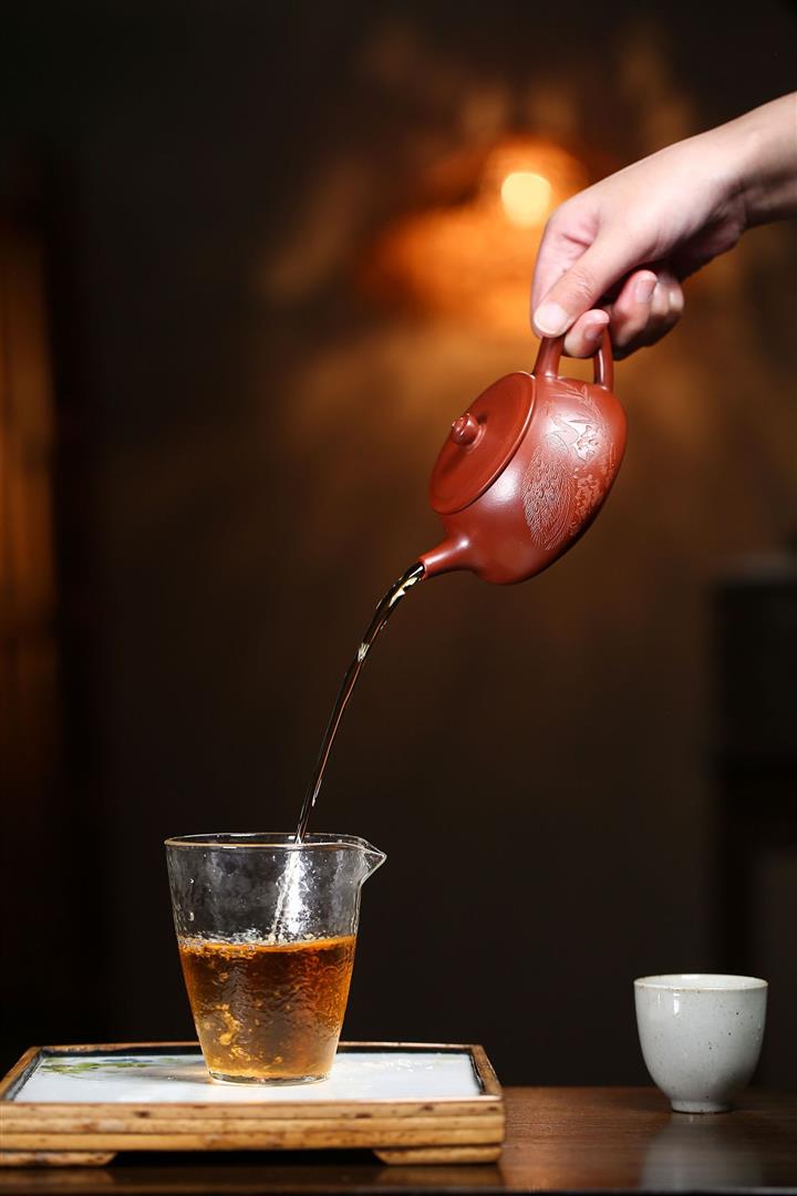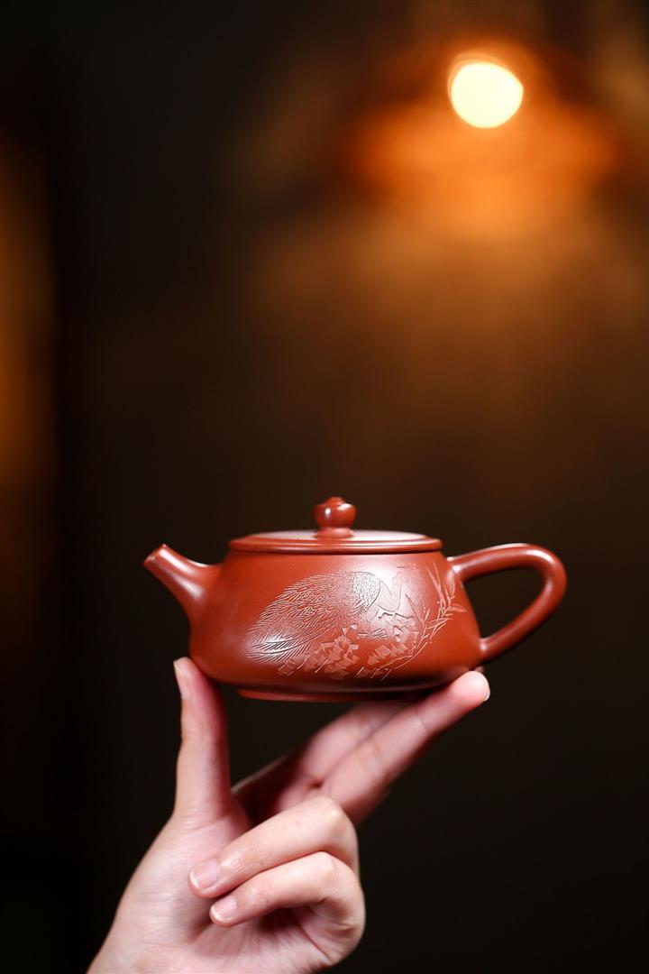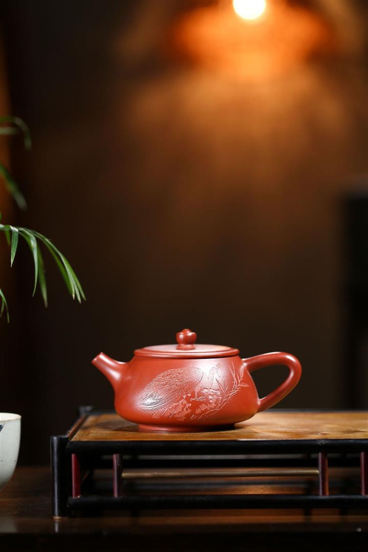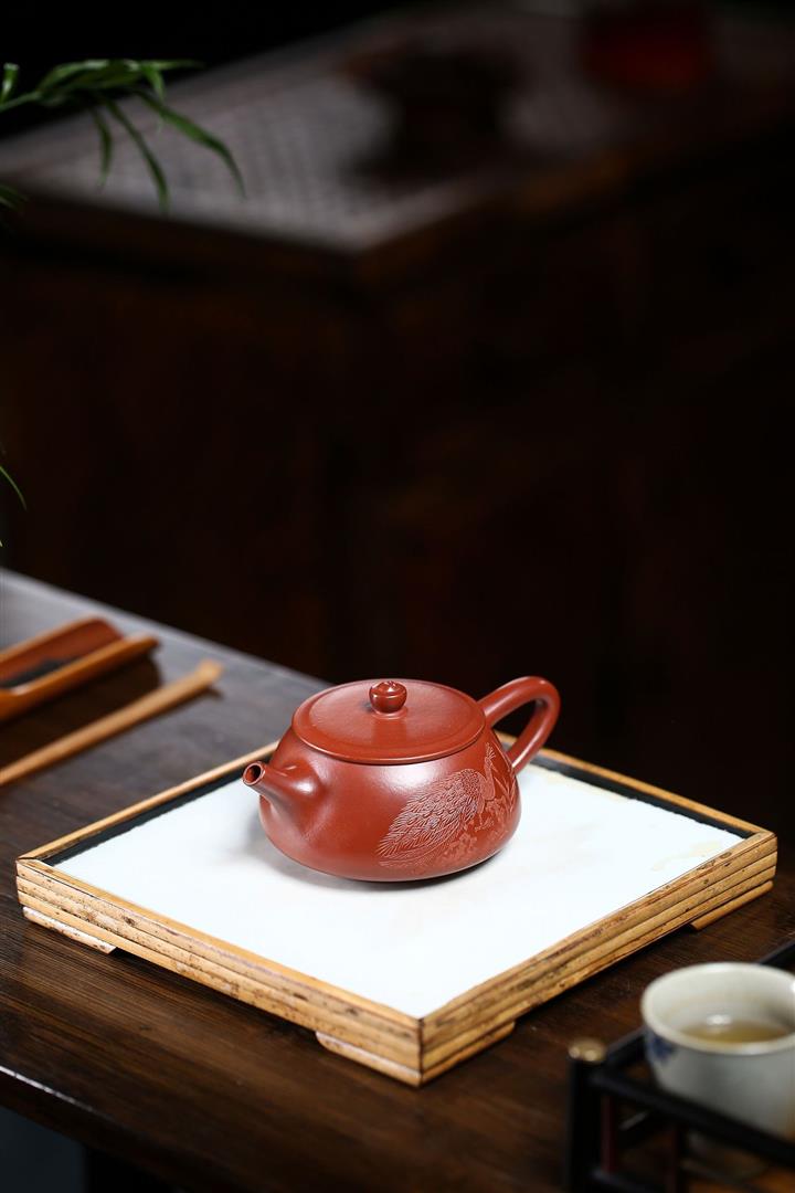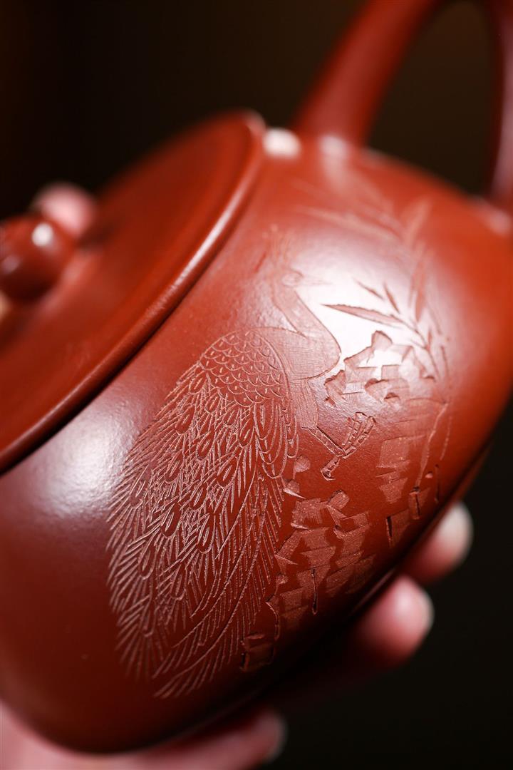 紫砂壺名家老紫泥刻繪周盤壺POT4196