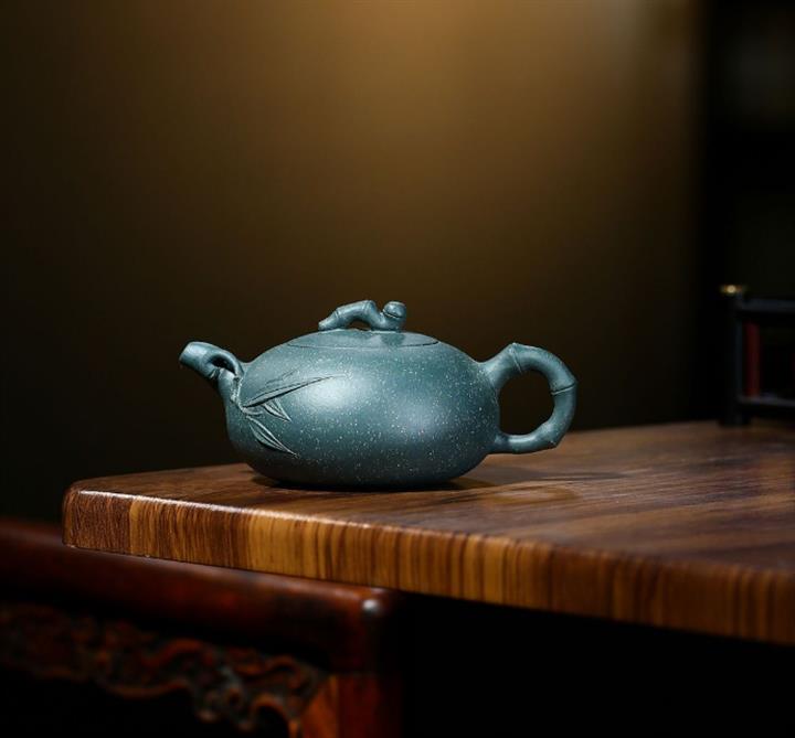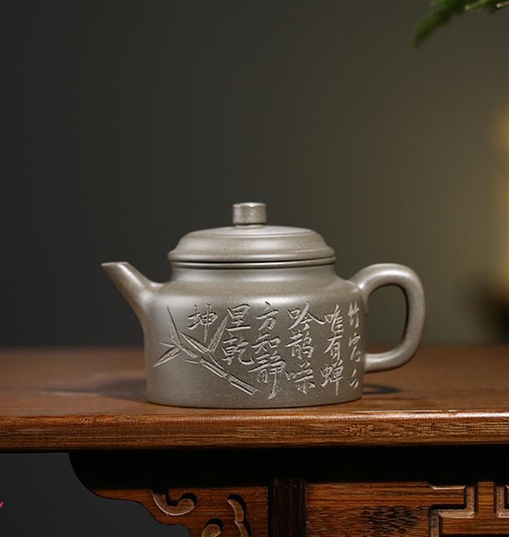 手工刻繪德鐘壺原礦青段泥紫砂壺POT4204