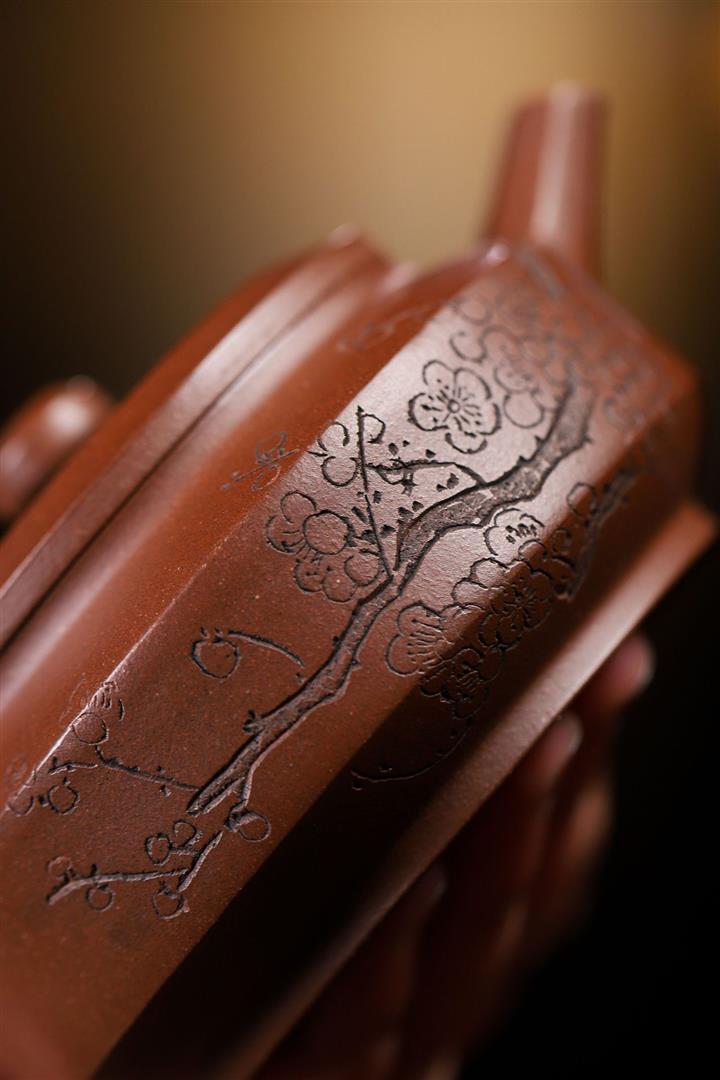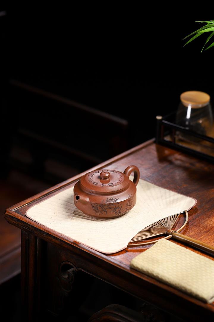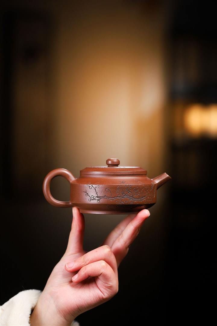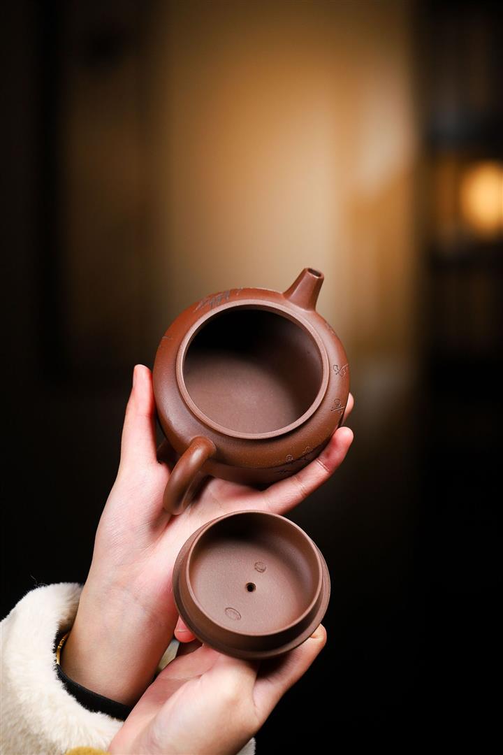 紫砂壺名家老紫泥刻繪周盤壺POT4196