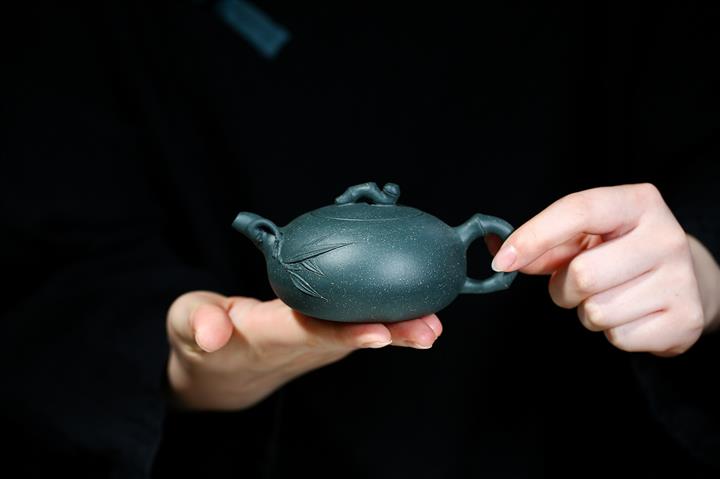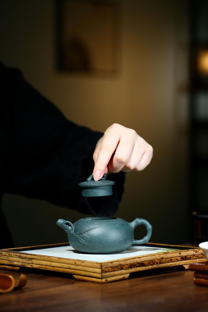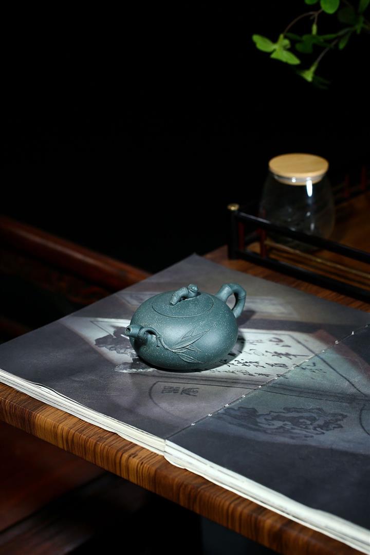 手工刻繪德鐘壺原礦青段泥紫砂壺POT4204