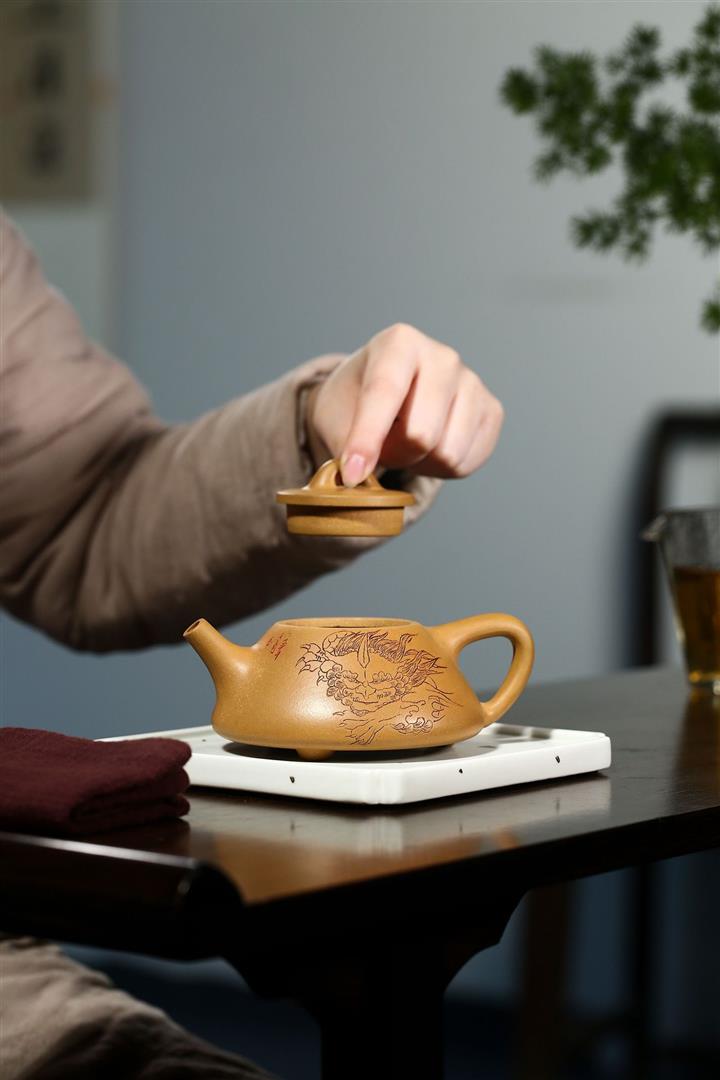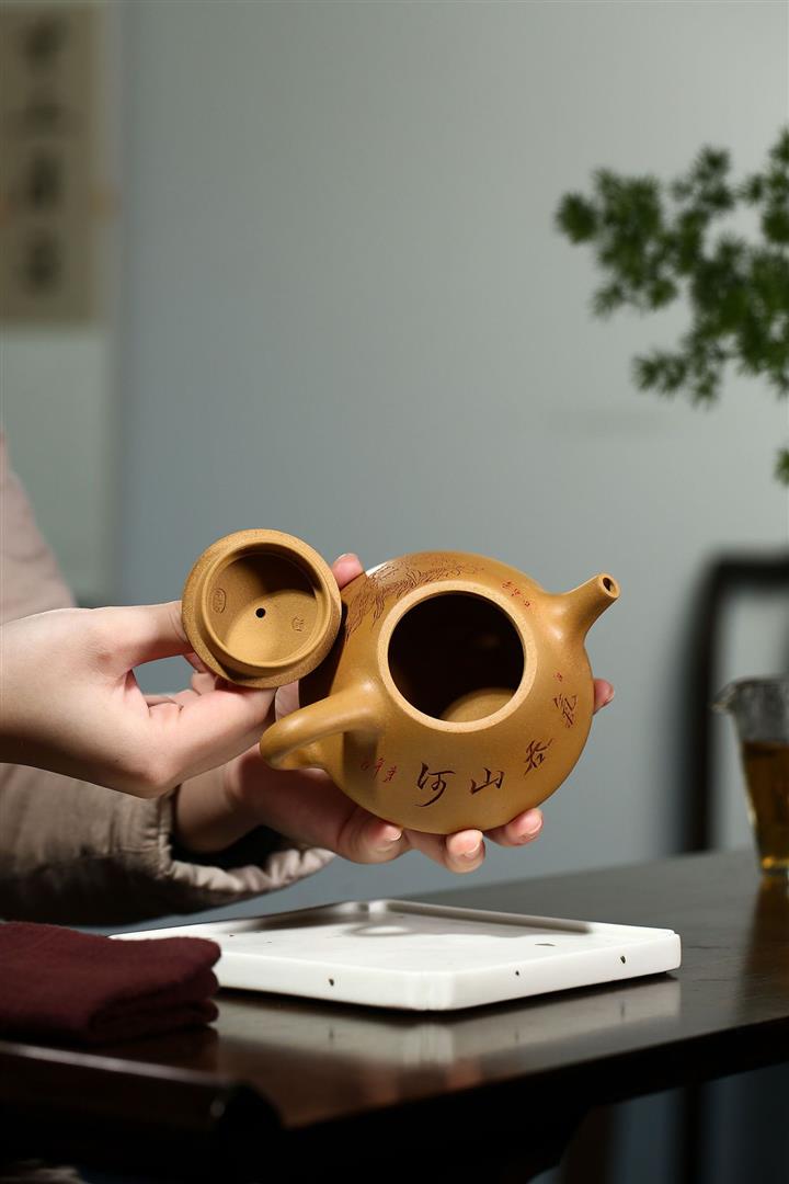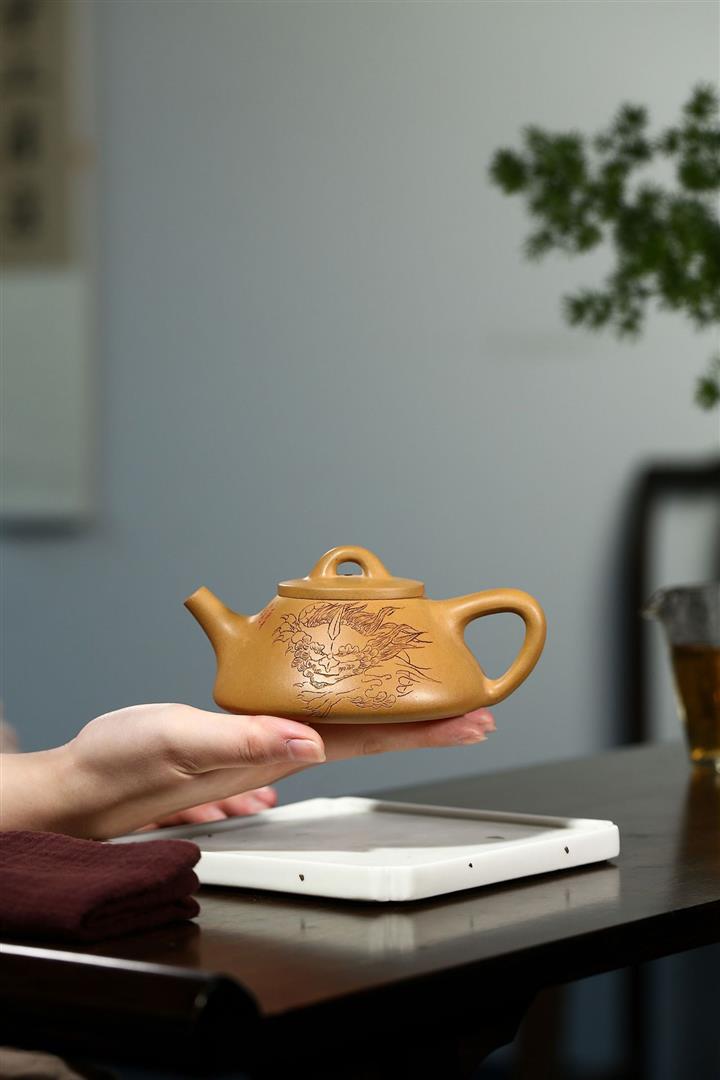 原礦工藝純手工刻繪龍蛋茶壺POT4212