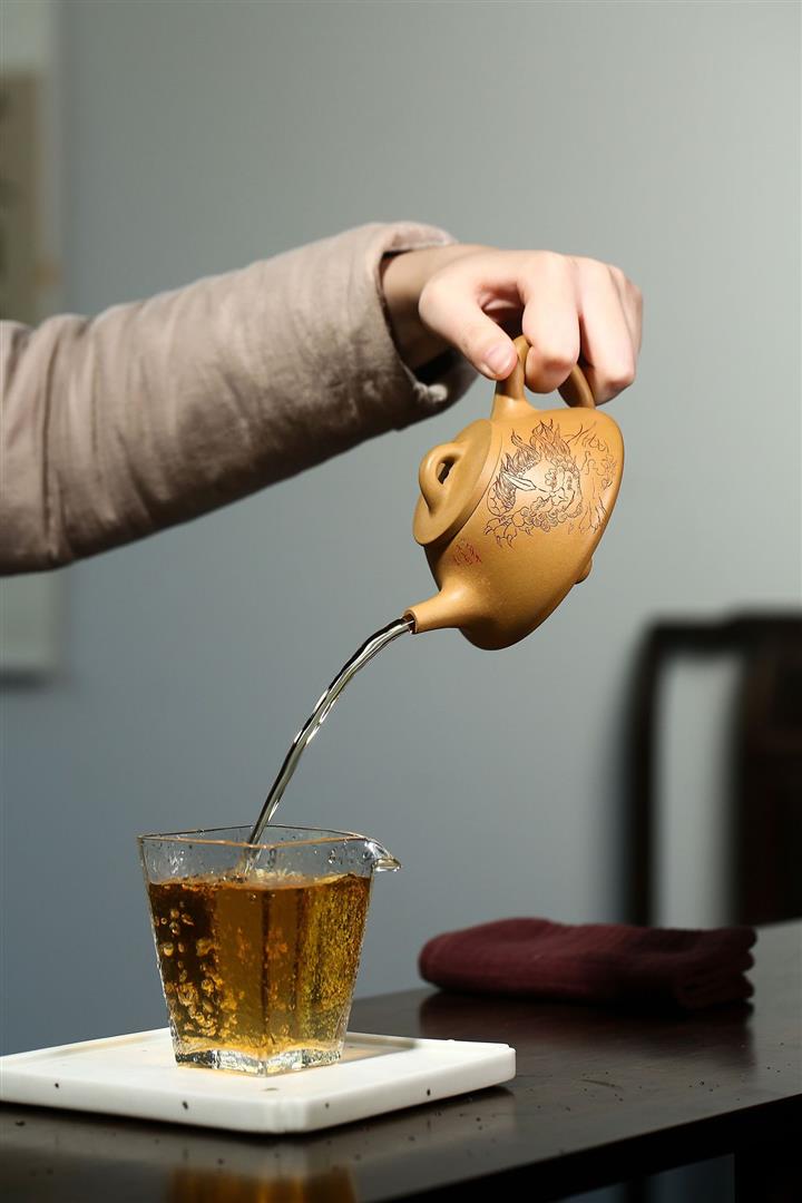【泥料特點】砂土氣重,似淳實農民,日久使用,漸露鋒芒,養成變化甚大,溫潤莊重。線條優美自然,嘴把搭配協調,身桶配上細長的把搭配,更顯優雅高貴