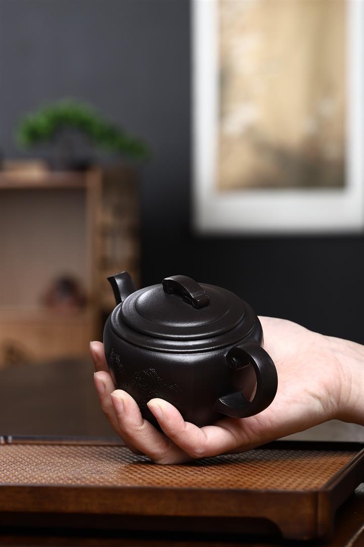 原礦紫泥大彬圈鈕手工刻繪紫砂茶POT4210