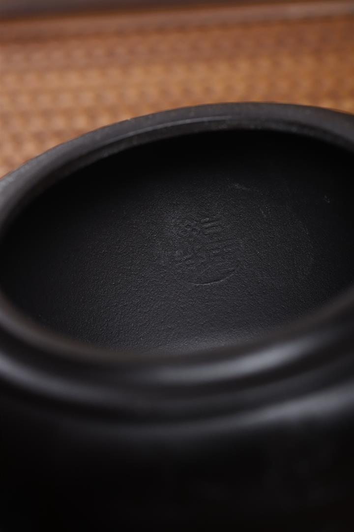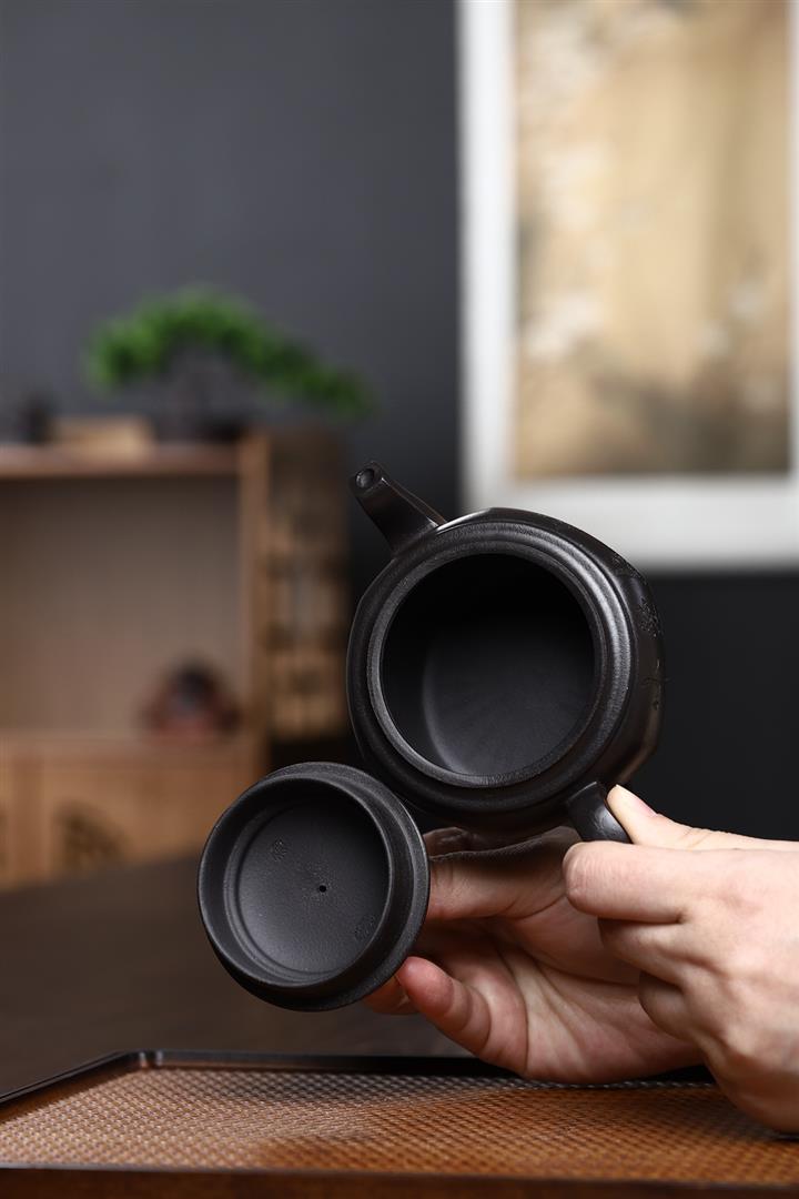 石黃壺又稱紫砂中的鐵壺,石黃含鐵量是普通泥料的五倍以上,是玩壺人從歷史以來碰到最神奇的料子,此料泥性酥軟,可塑性極低故難成型,全砂料,老師精心研究了二十多年,終於在近幾年製作成功,此料在生胚做的時候,極容易自然開裂,而且又難燒成,成品率達到30%已是老師極高的境界。石紅泥料壺的縮比按照容量算約35%左右,按直徑縮小18%左右。石黃壺軟水功能堪比日本鐵壺,對發茶性和茶口感有明顯的提升效果。丁山可做石黃壺的老師,了了無幾,低溫燒成迷人的黑色、高溫燒成高貴的紫檀色、獨特的玄鐵質感、泡養三天即可包漿、這麼神奇的石黃壺真值的玩家收藏!