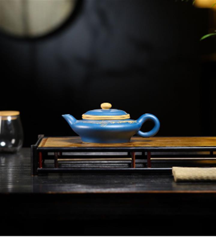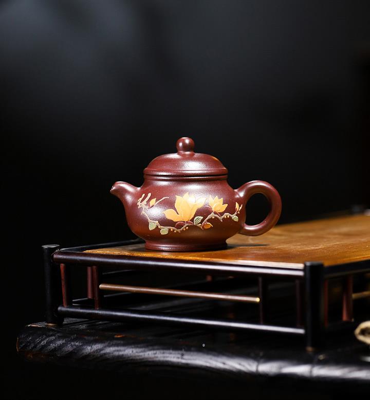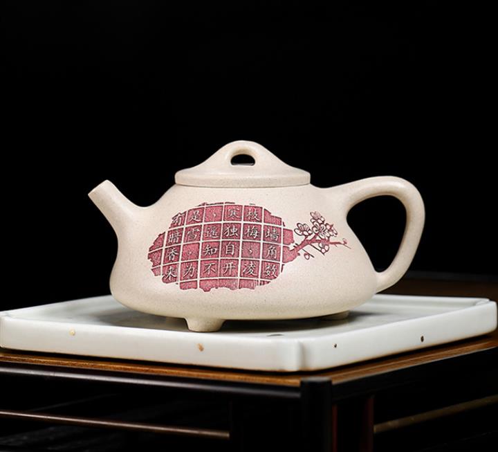 寒梅虛扁黃段粉漿紫砂壺 POT4238