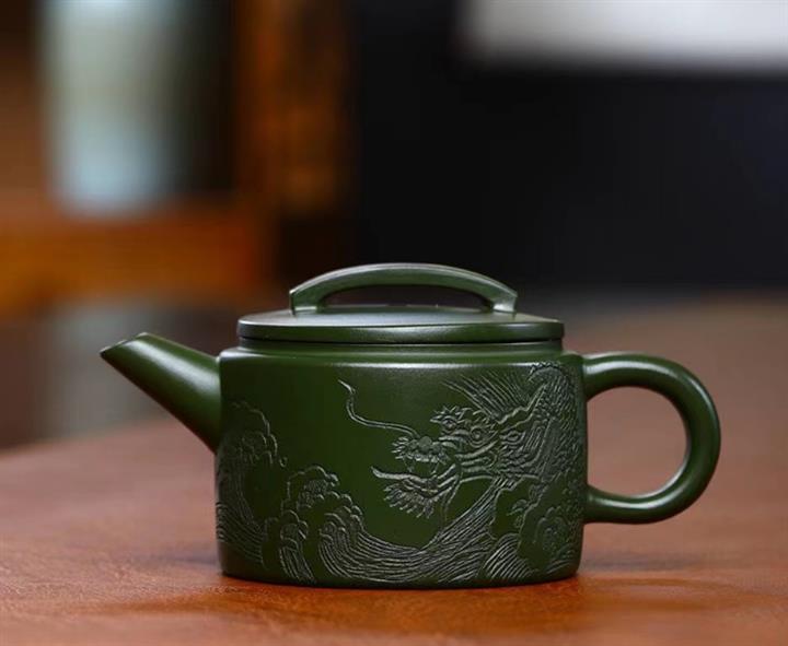 全手工原礦綠泥卡蓋騰龍刻畫POT4246
