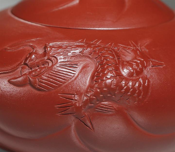 手工大紅袍魚躍龍門魚化龍卡蓋POT4247
