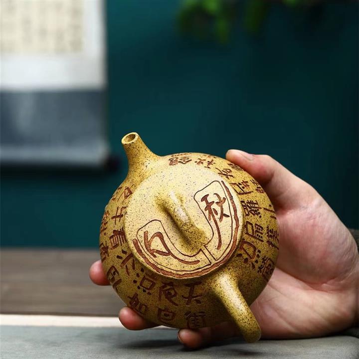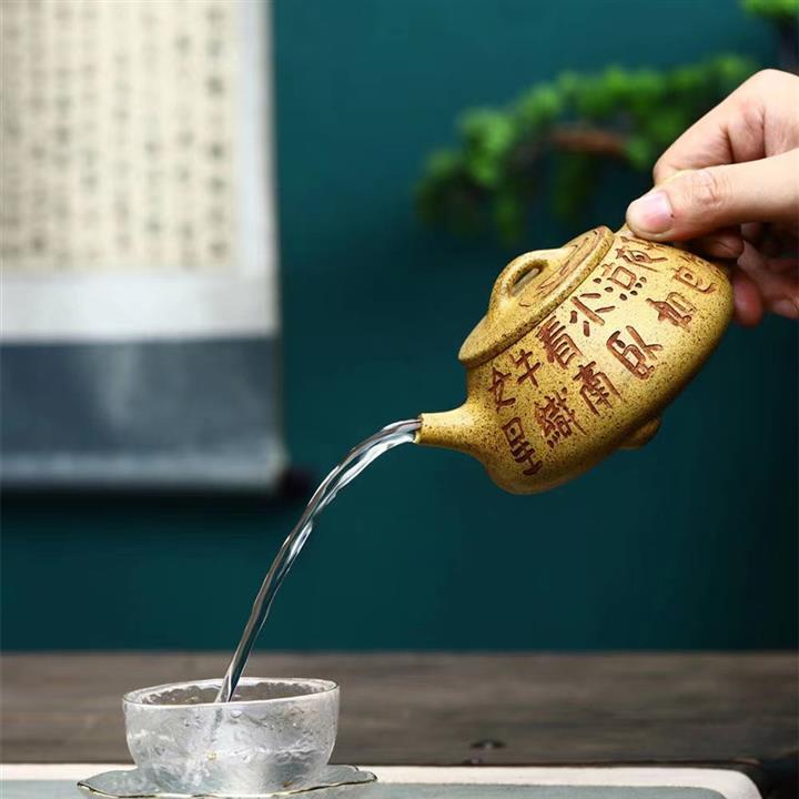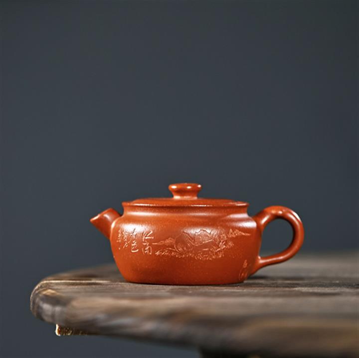 原礦老紫泥刻繪六方龍紋井欄壺POT4295