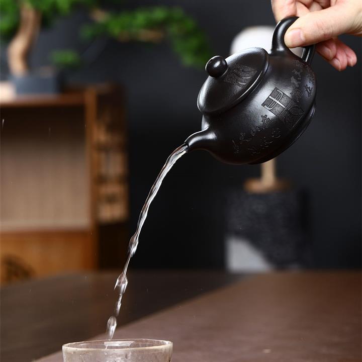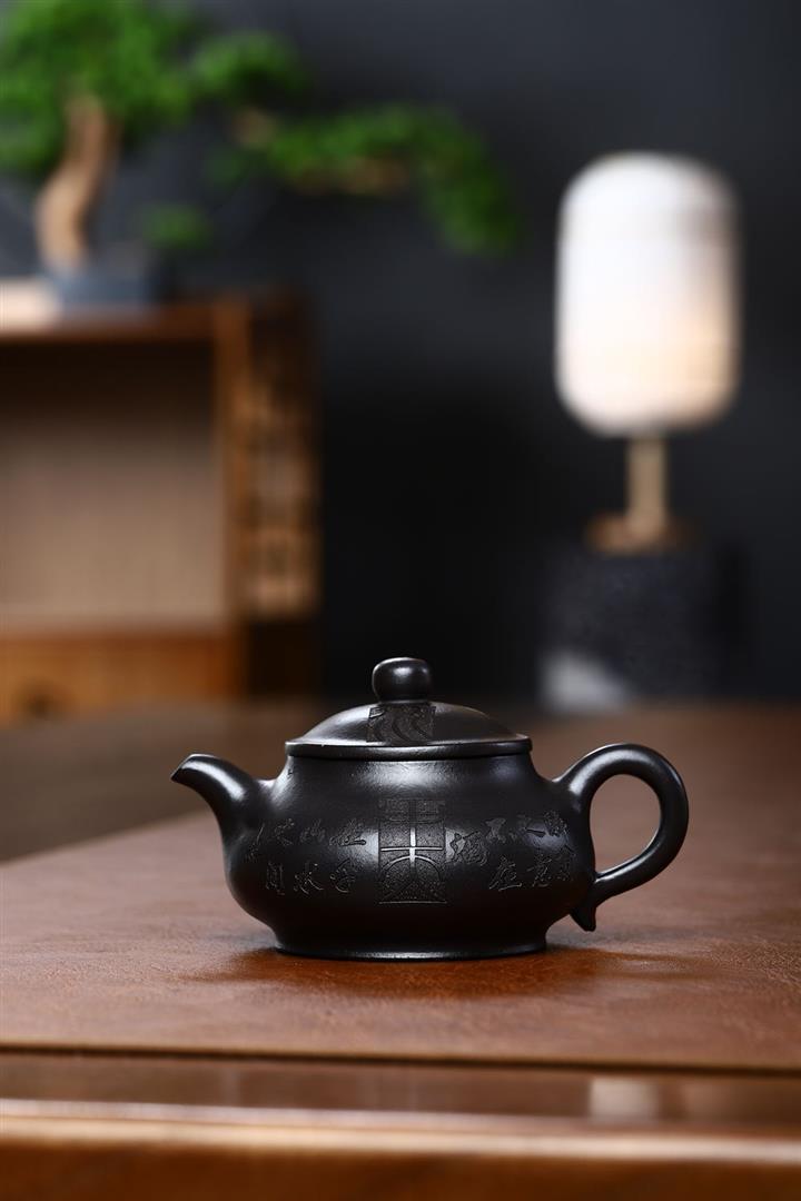 原礦老紫泥刻繪六方龍紋井欄壺POT4295