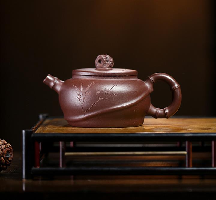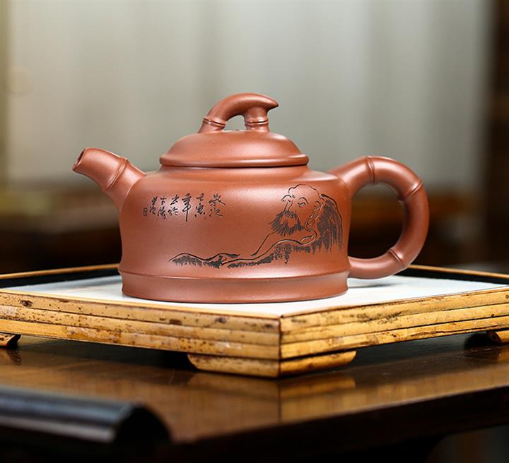 原礦老紫泥刻繪六方龍紋井欄壺POT4295