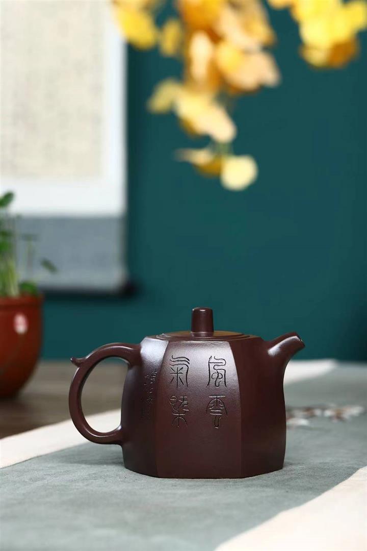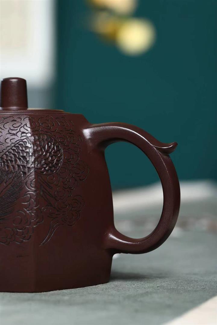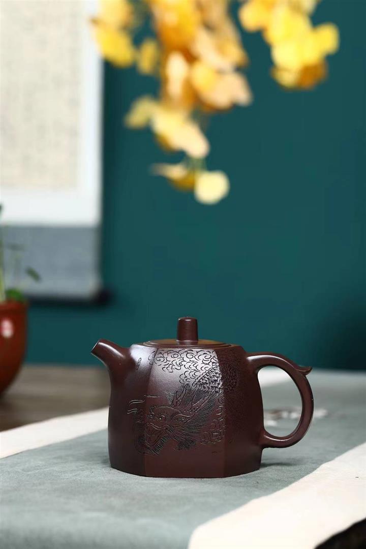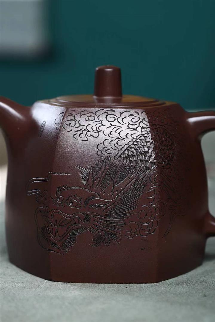 原礦老紫泥刻繪六方龍紋井欄壺POT4295