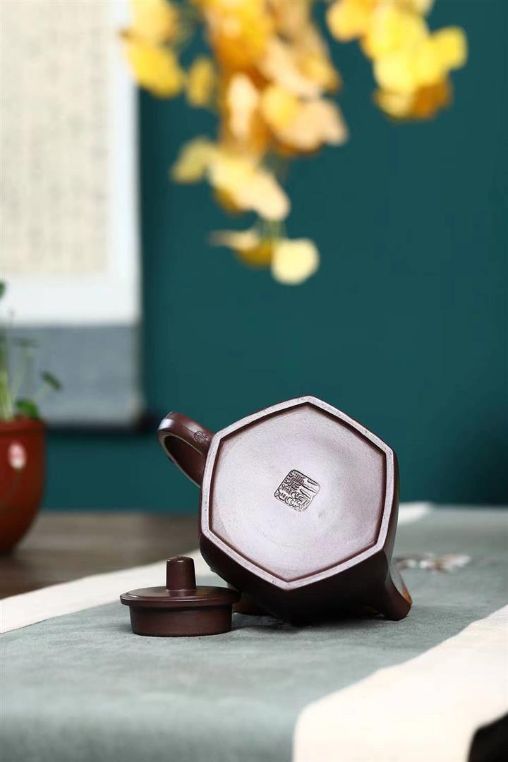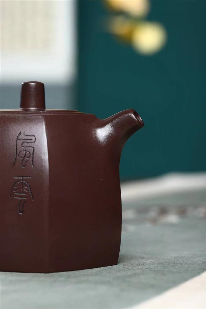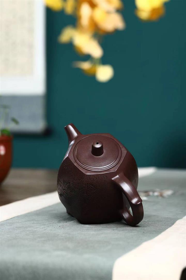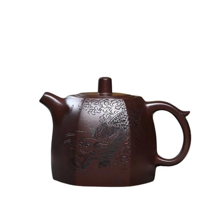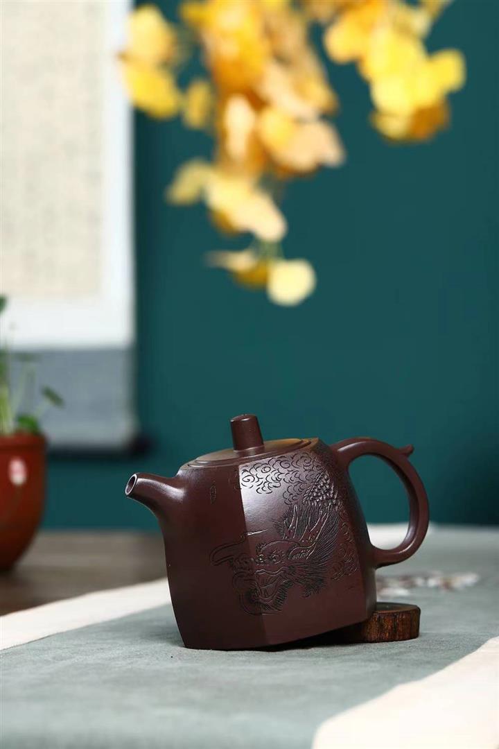 原礦老紫泥刻繪六方龍紋井欄壺POT4295