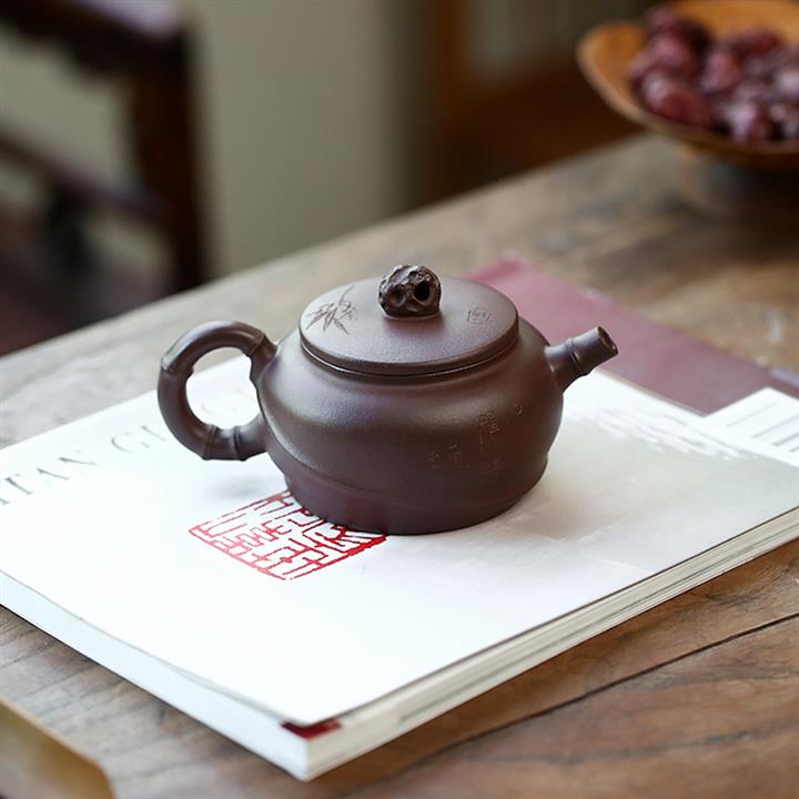 原礦紫泥手工竹影清風紫砂壺POT4310