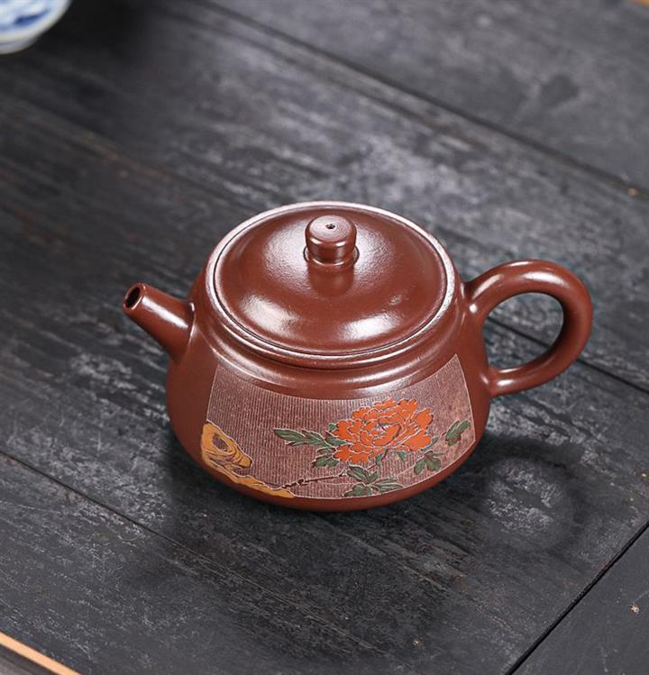 原礦紫朱泥花開富貴紫砂壺POT4330