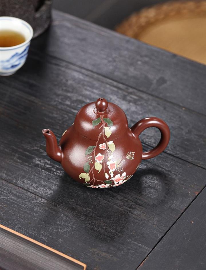 原礦紫朱泥花開富貴紫砂壺POT4330