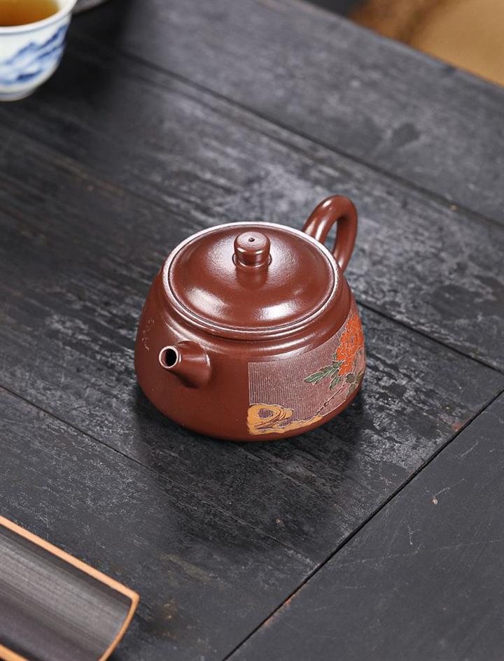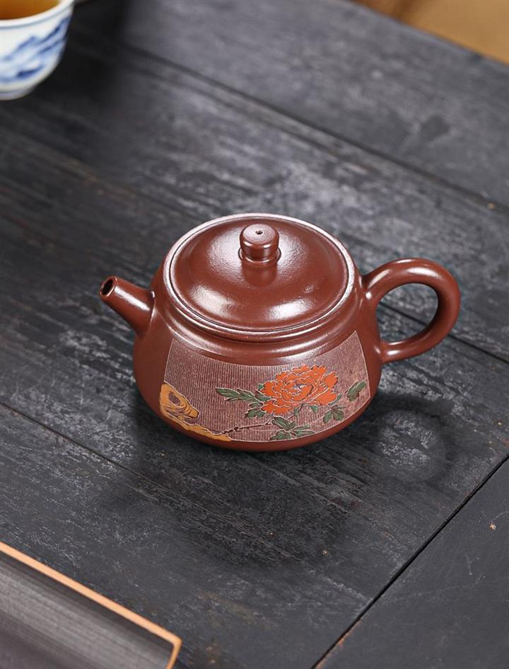 原礦紫朱泥花開富貴紫砂壺POT4330