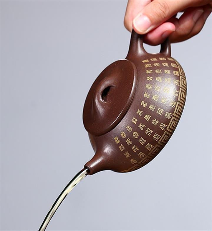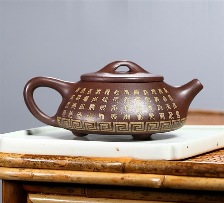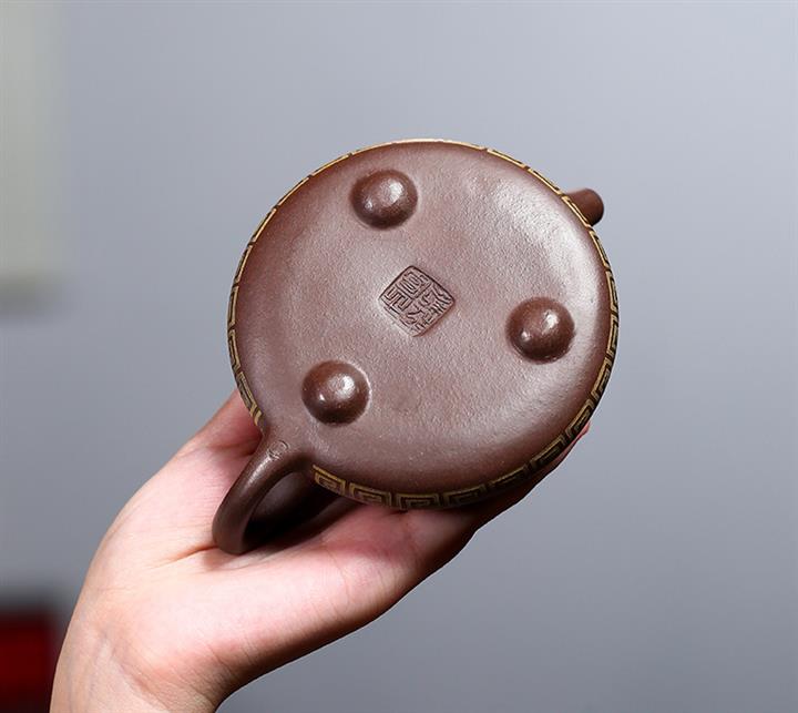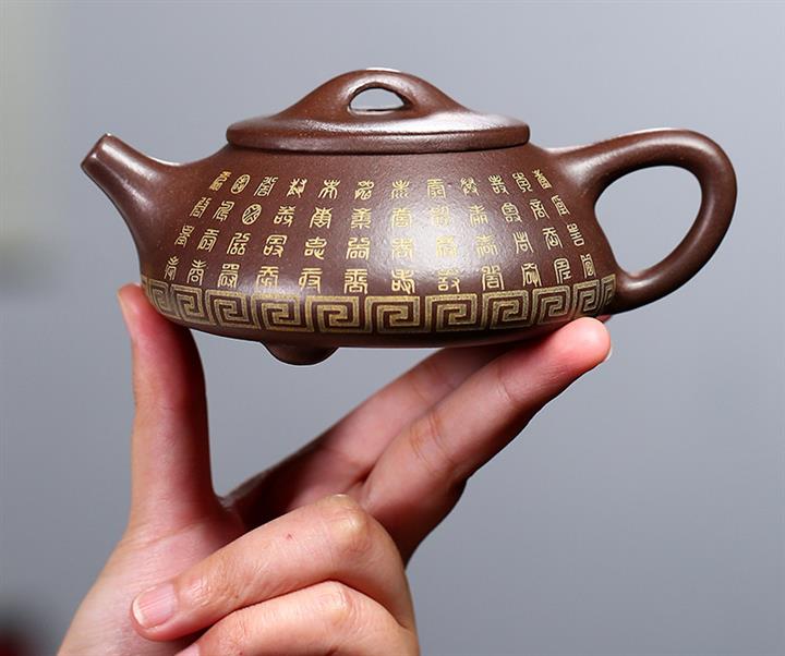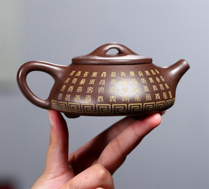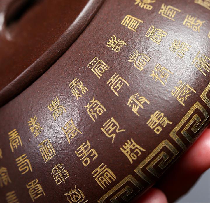 原礦黑泥描金福字德鐘紫砂壺POT4347