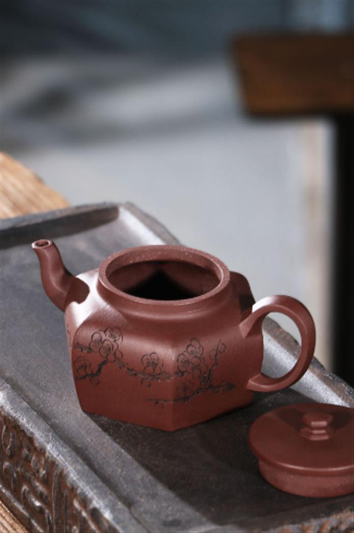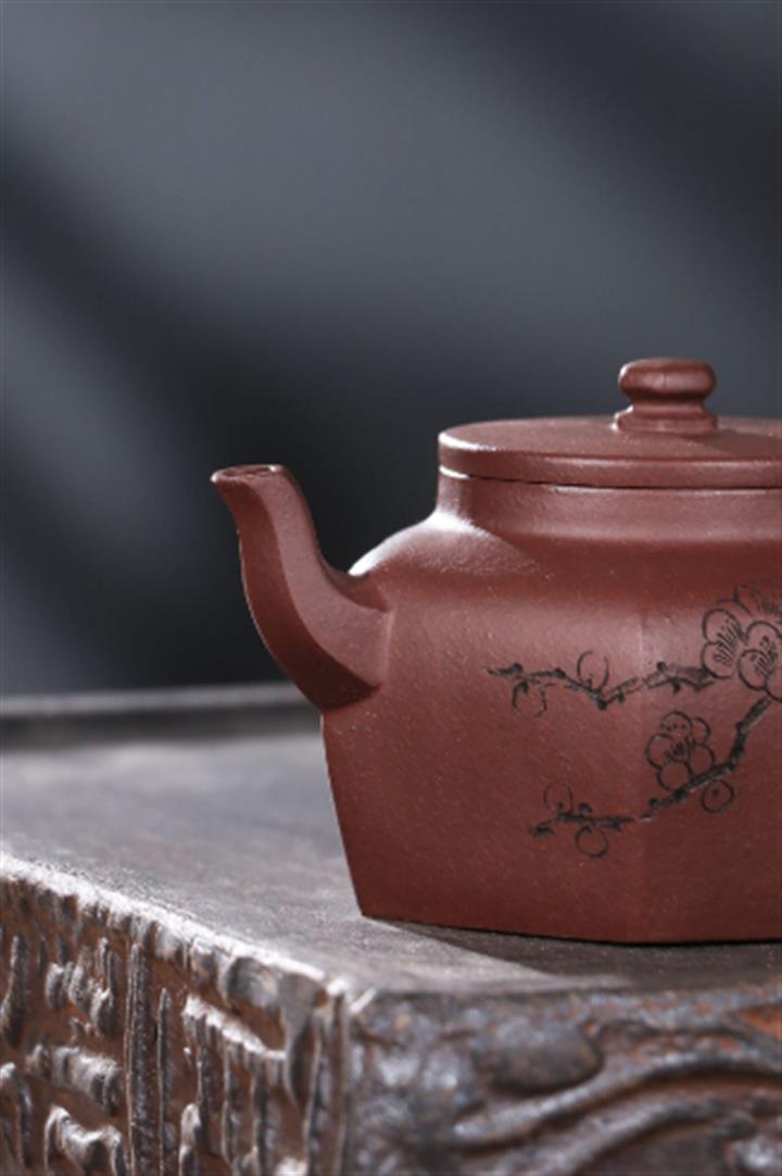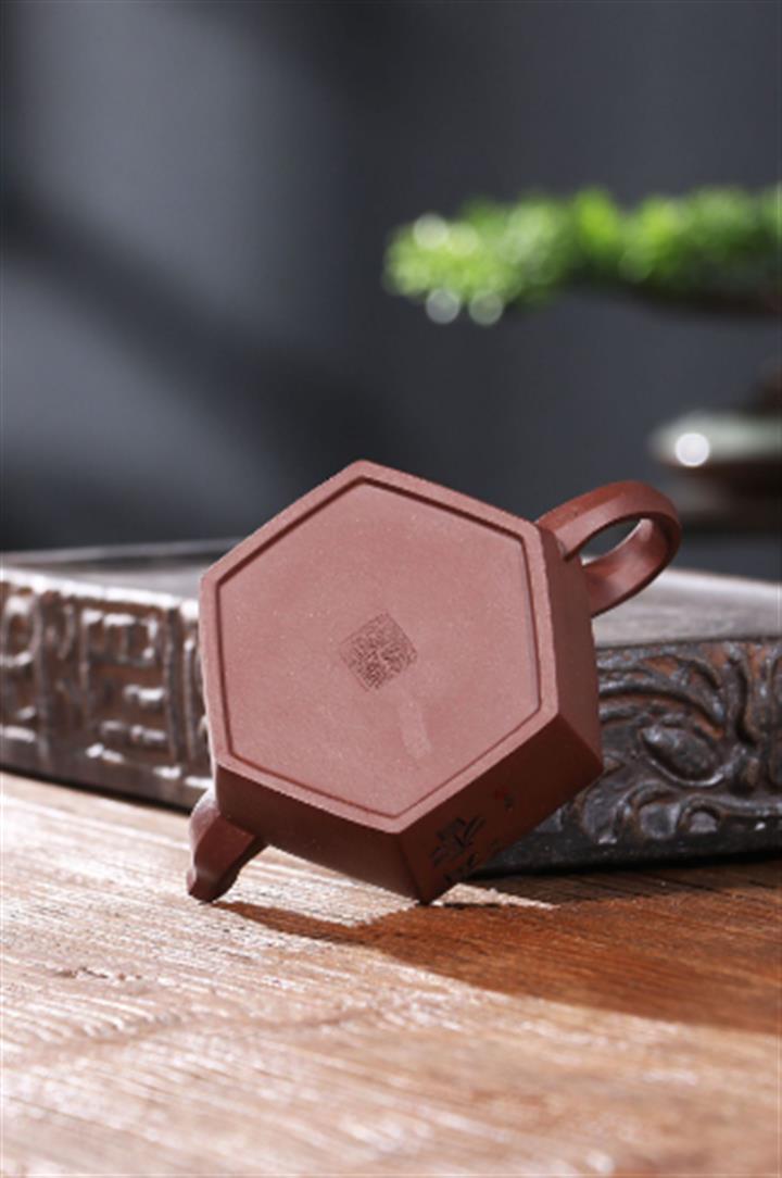 【簡介】壺身六方,壺鈕、壺蓋、壺頸、壺肩至壺足,共有大大小小九個六邊形依次排開,如片片雪花墜落,層層疊疊、連綿不盡,象征好福氣、好意頭,意寓「瑞雪兆豐年」。壺流飄逸,壺把端方,皆由不同的六邊形結合,方中寓圓,柔中見剛。