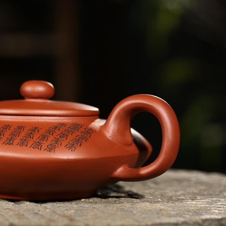 原礦陳腐百目老紫泥竹影扁晨茶壺POT4394
