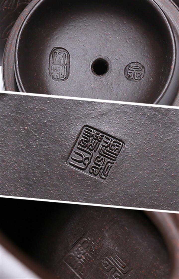 原礦陳腐百目老紫泥竹影扁晨茶壺POT4394
