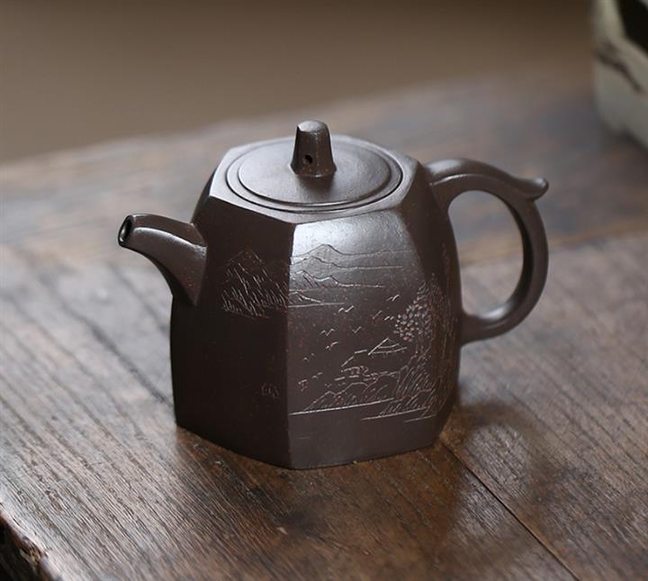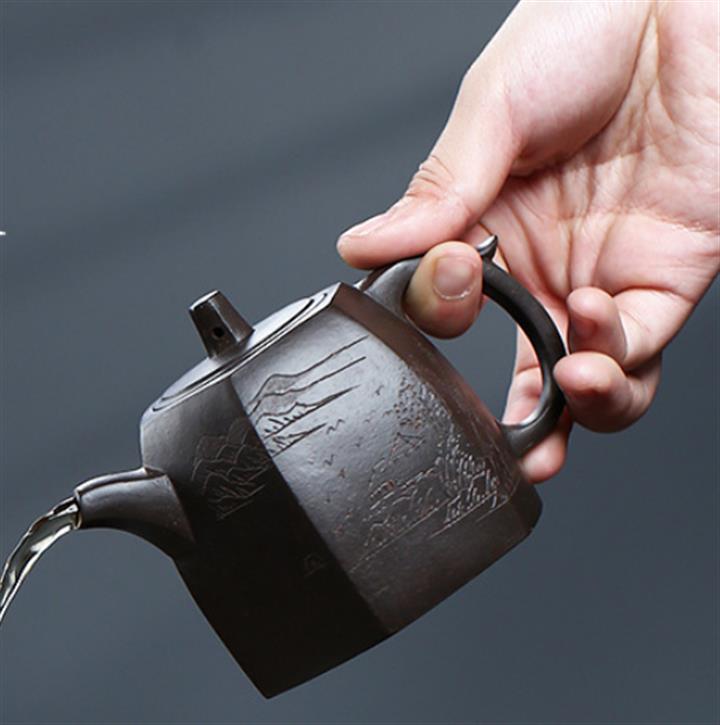 原礦黑泥八面撒金玲瓏紫砂壺POT4407