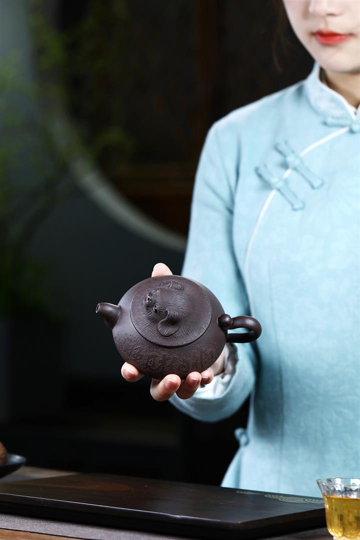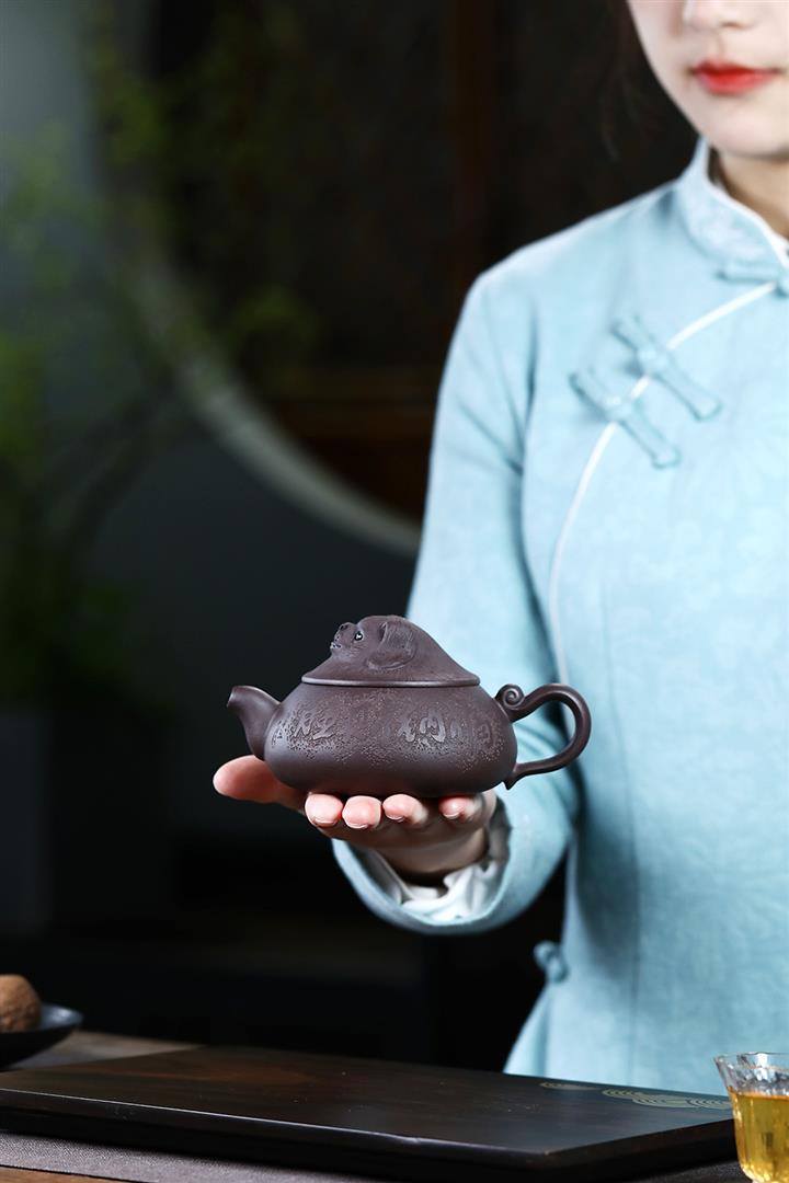 原礦天青泥三足鳳鳴周盤紫砂壺POT4422