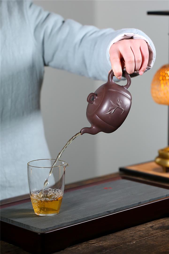 【簡介】紫泥,為較常見之典型紫砂泥; 良者寡,而劣者多,呈紫色,玩家慣呼「黑紫泥」,為廣泛市場接受的泥料之一。為江蘇宜興黃龍山,礦脈所開挖出來的紫砂原礦提練而成,礦脈裏鐵質成份較高泥料內所含顆粒較大結構疏松器身明顯成雙氣孔結構,空氣對流順暢氣孔對流較好;日久使用,漸露鋒芒,養成變化甚大為養壺之佳教材。泡茶好喝,評價好!特點:泥色成熟穩重、端莊肅穆,作品大小皆宜,呈棕紫色調,能安定心靈,親和力甚佳。