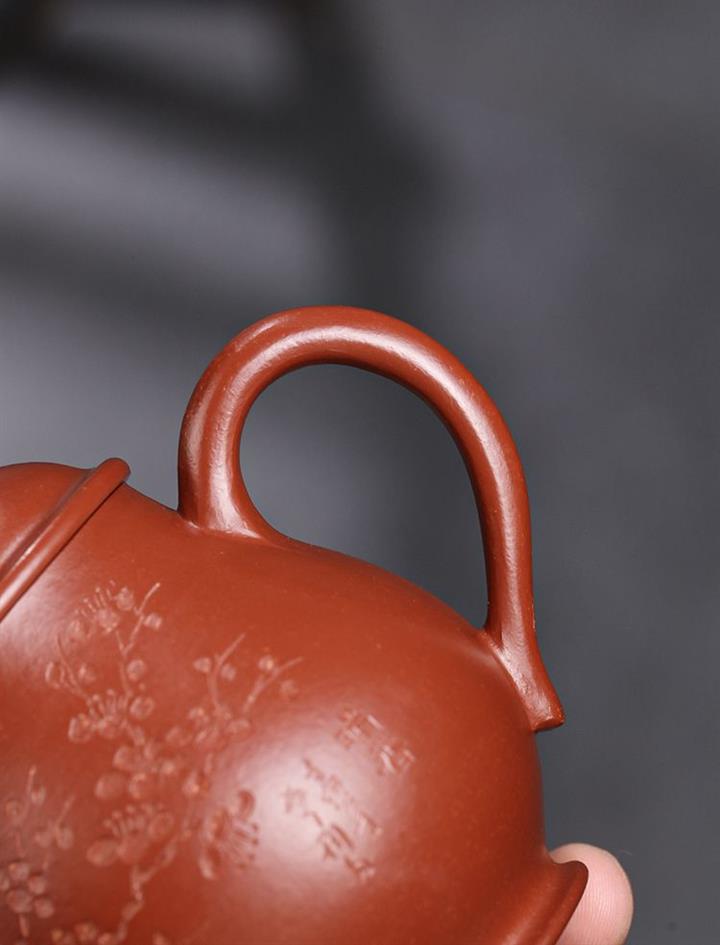 【介紹】此款高潘壺壺身豐實有力、骨肉亭勻,沈穩端重又大氣,直流挺翹,出水爽利幹脆,壓蓋與壺口緊密,茗香不散,珠鈕圓潤可人,拿捏適手,把圓而挺括,渾厚有勁,泥色醇和爾雅,文人氣息濃厚,實用把玩兩相宜!