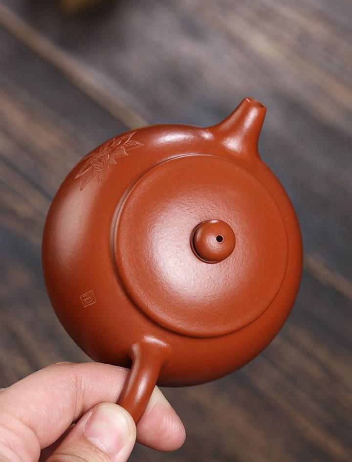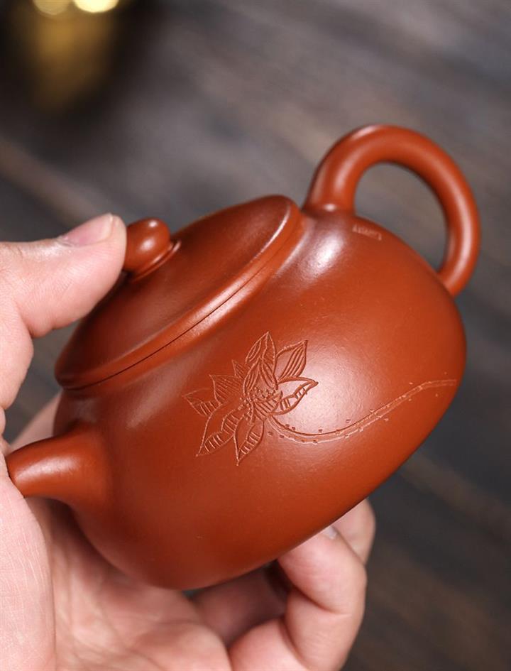 【介紹】此壺壺身扁闊的壺體,嘴短而圓,出水暢快,壺身精美刻繪荷花,其上珠形鈕與壺身對應,更顯和諧韻味。結合耳形端把,整體簡約而不簡單,觀之一種樸拙之氣,賦予了納福壺豐富的內涵、美好的寓意。