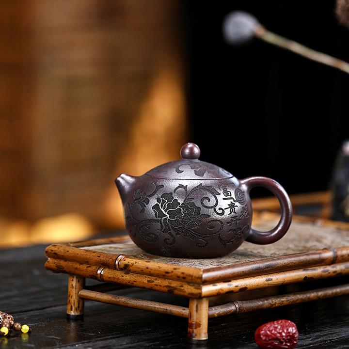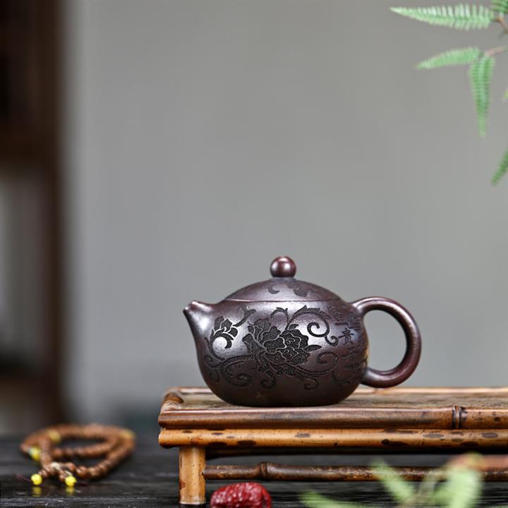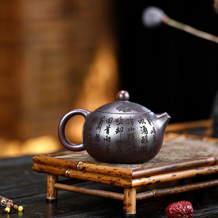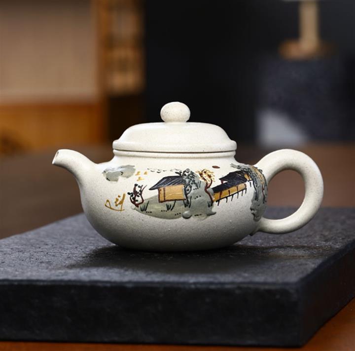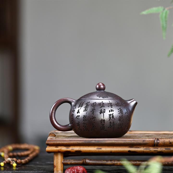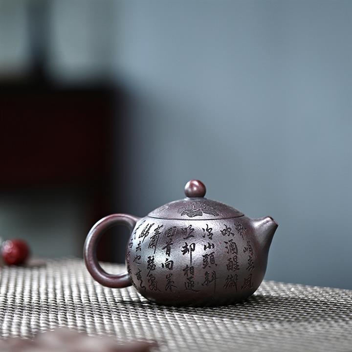 【介紹】此壺名為西施壺,是紫砂壺中的經典款型。該壺比例協調,器型圓潤,出水流暢,泥料透氣性好,容易泡養,壺身刻字畫,配證書,送壺繩,禮品盒包裝。