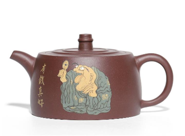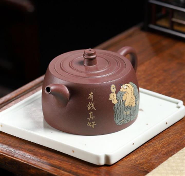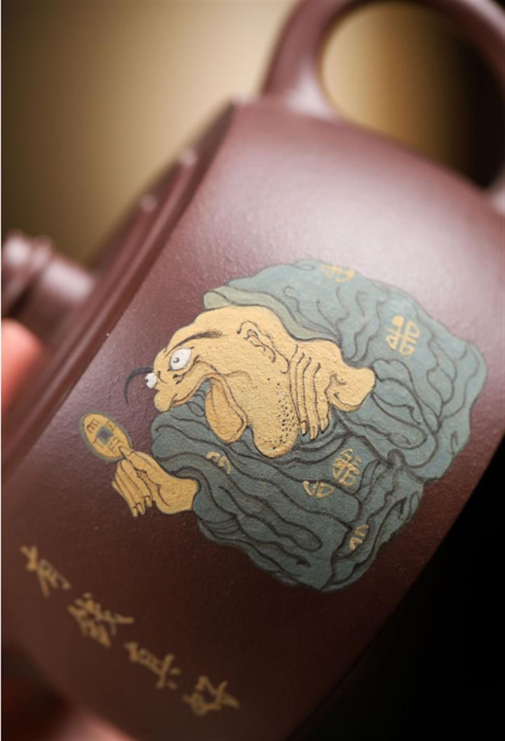 白玉段泥泥繪仿古紫砂壺POT4519
