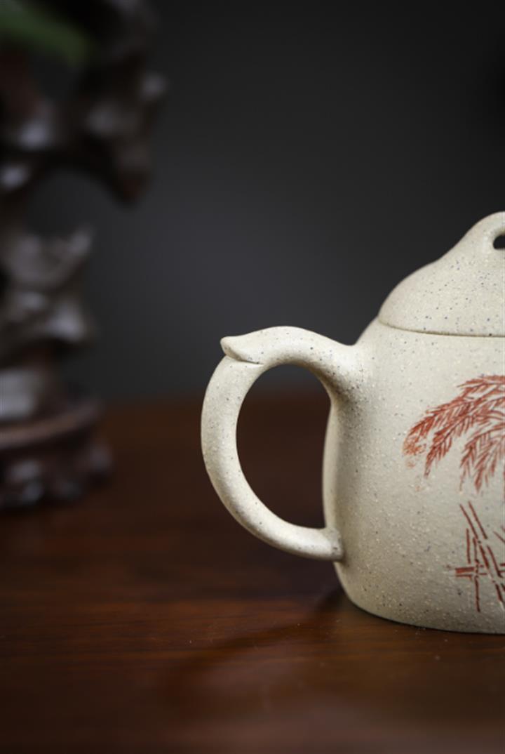 原礦紫泥竹影石瓢紫砂壺POT4564