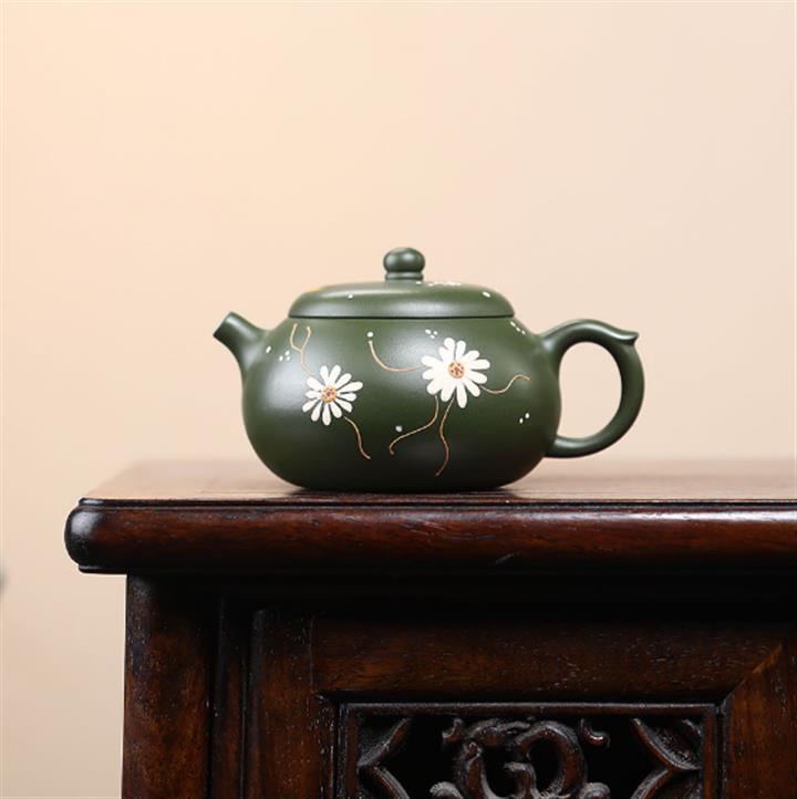 【介紹】此壺名為井欄壺,是紫砂壺中的經典款型。該壺比例協調,器型小巧,壺扭瑞獸紫砂,拿取方便,壺身泥繪字花,出水流暢,泥料透氣性好,容易泡養,配證書,送壺繩,禮品盒包裝。
