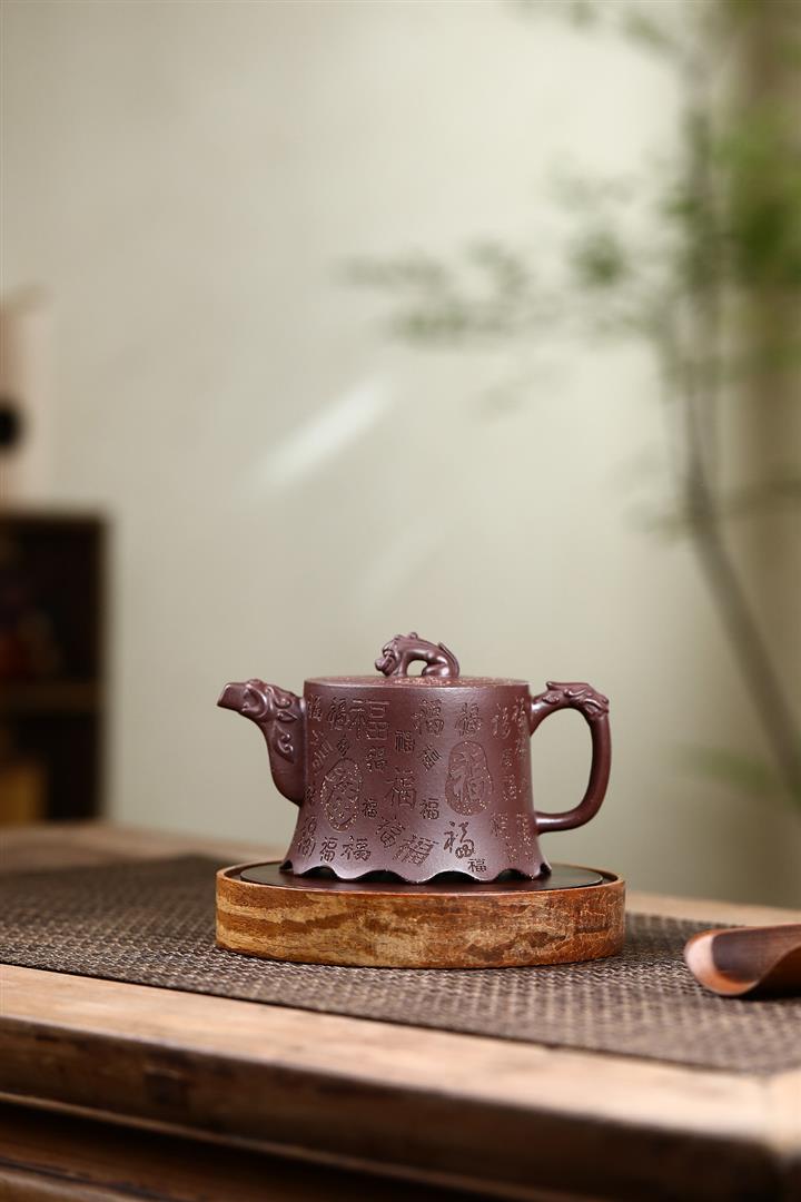 原礦紫玉金砂百福金鐘紫砂壺POT4592