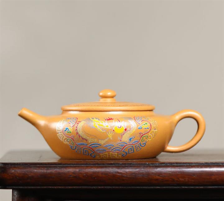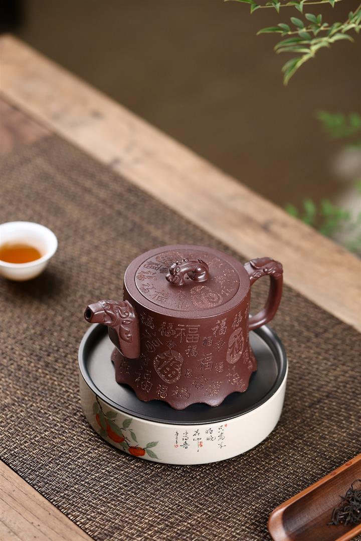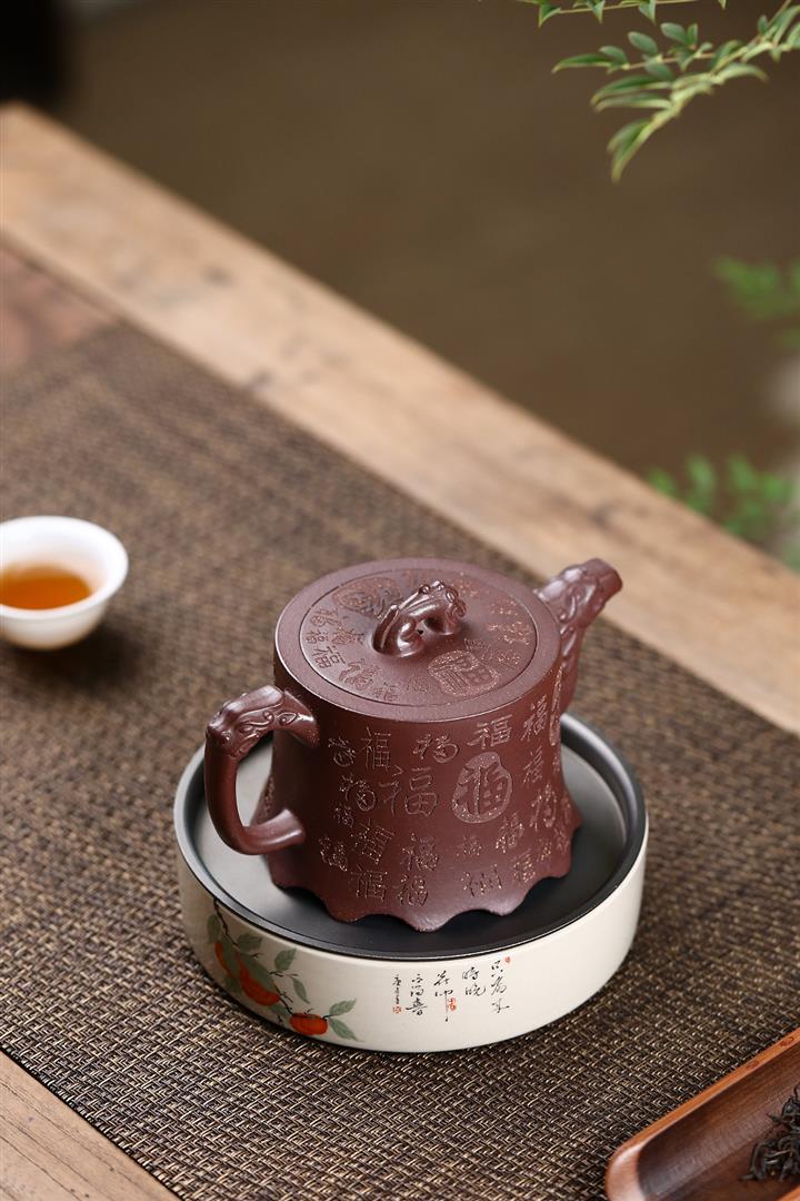 原礦天青泥年年有余巨輪紫砂壺POT4594