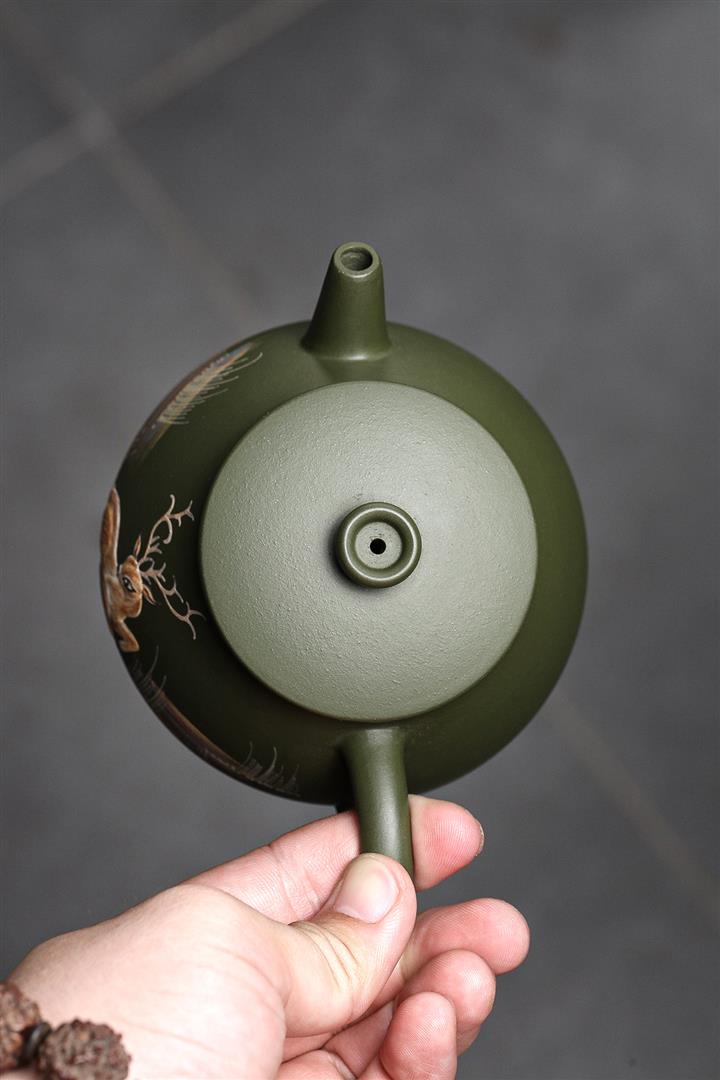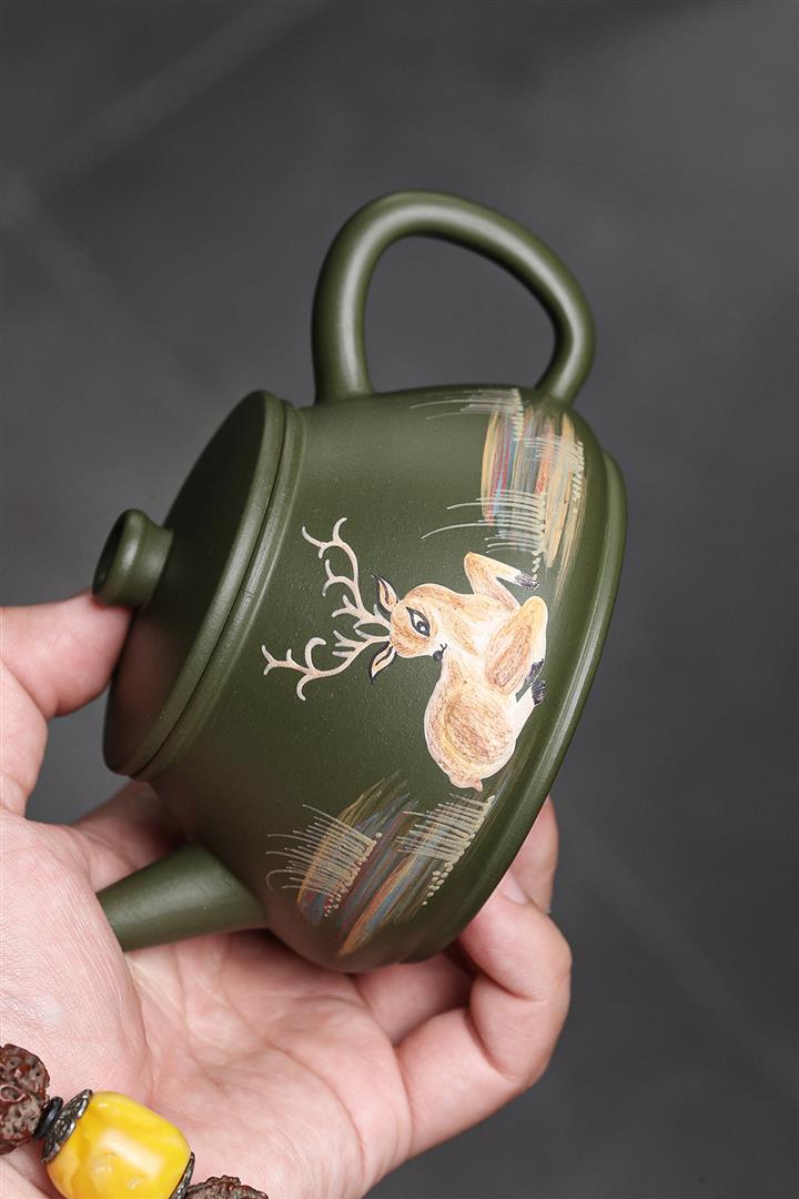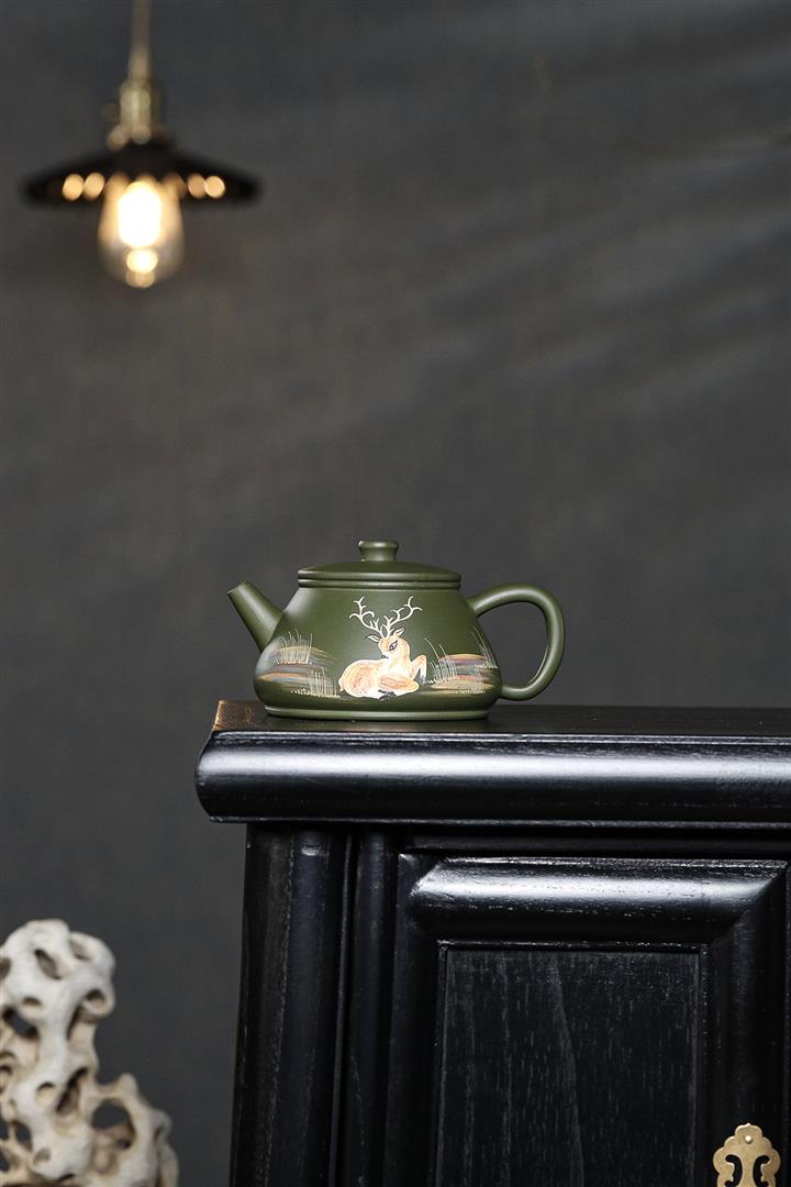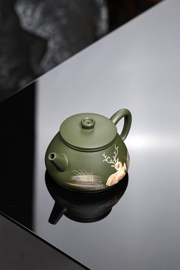 綠泥梅花鹿紫砂壺POT4613