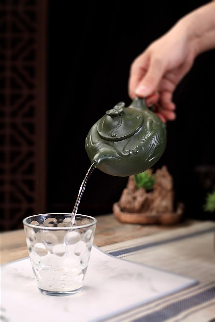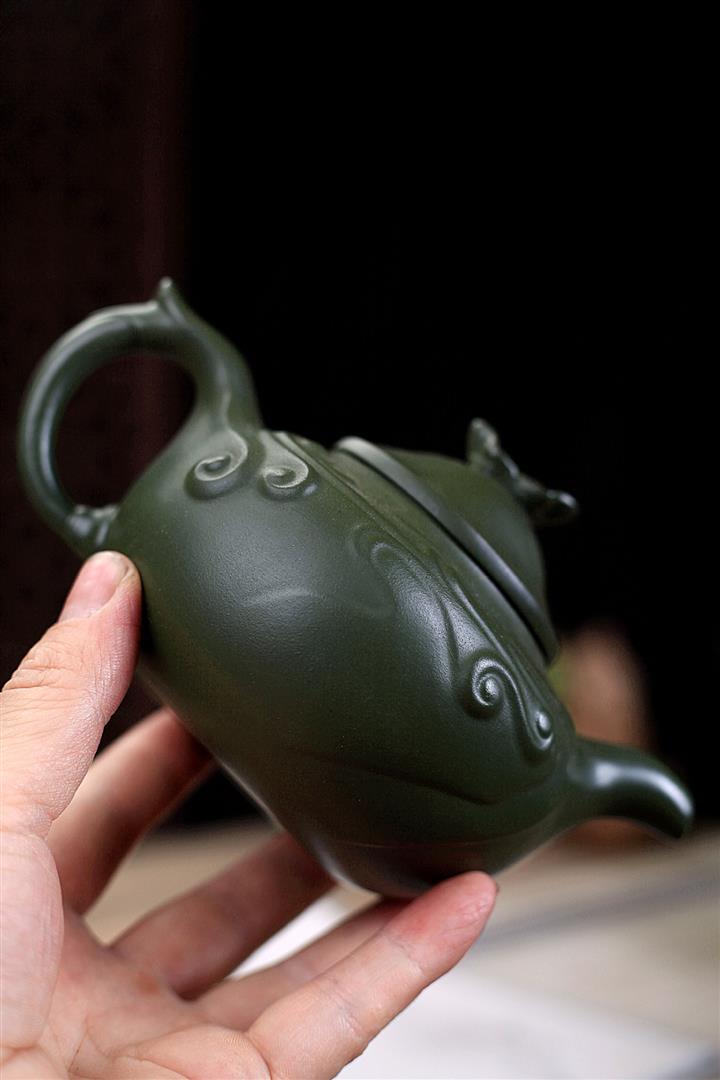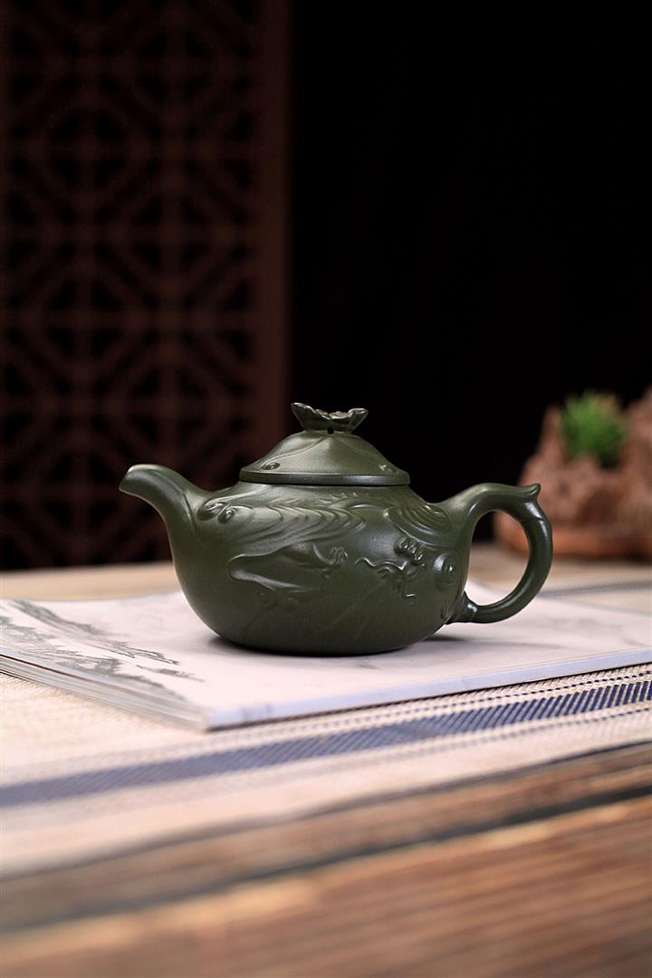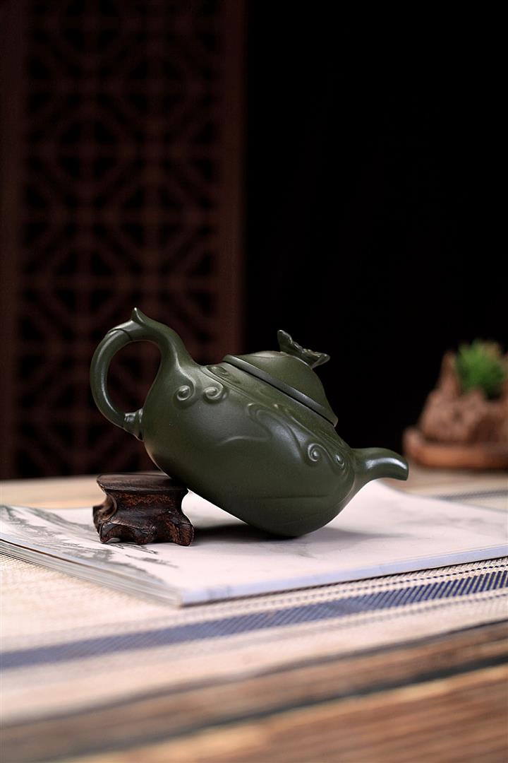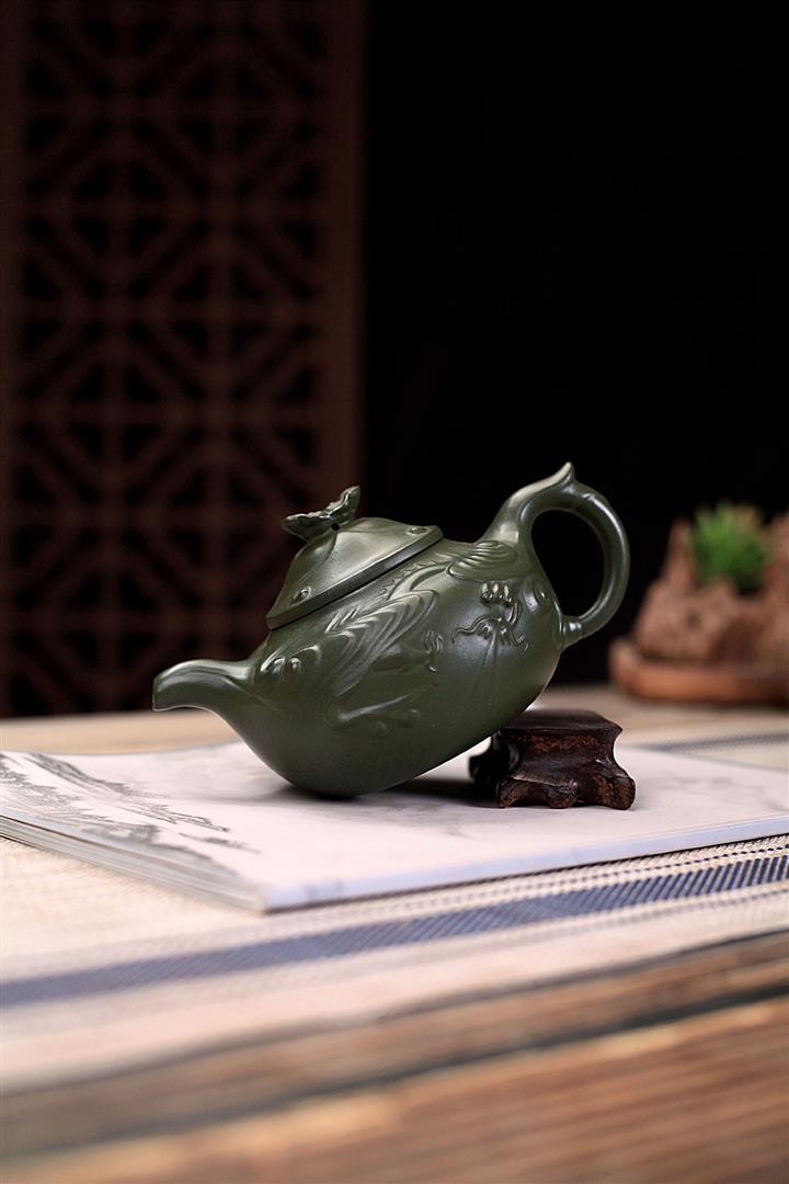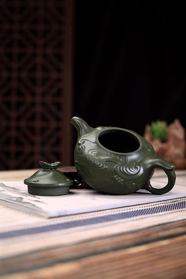原礦綠泥祥雲魚化龍紫砂壺POT4616