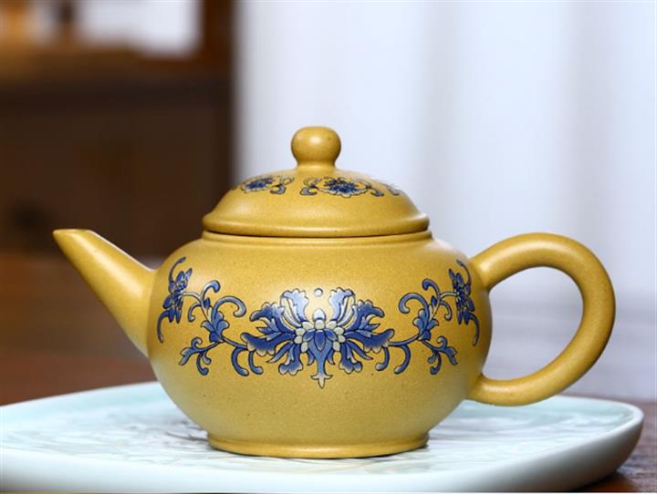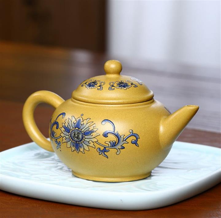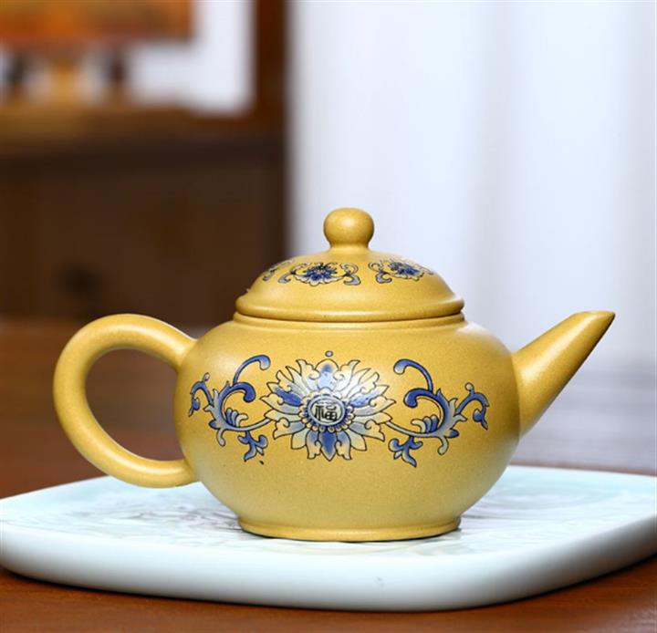 原礦紫泥描金曲壺POT4671