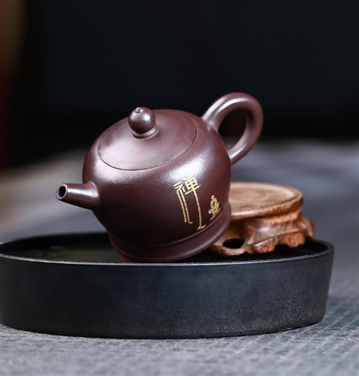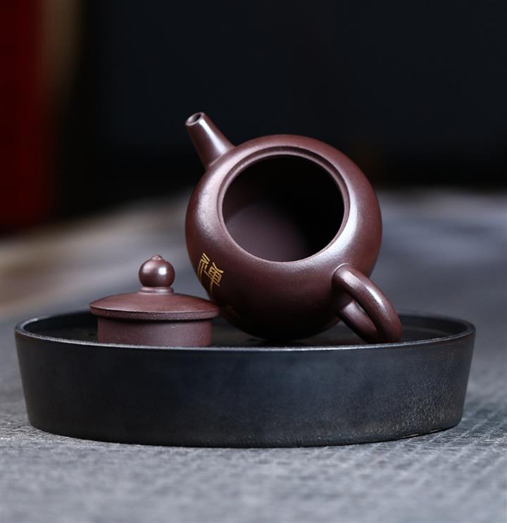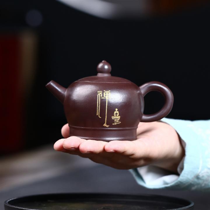 原礦紫泥描金曲壺POT4671