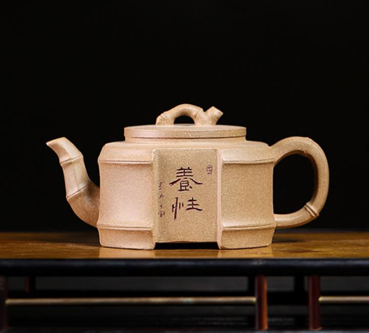 原礦青灰段泥四方竹韻紫砂壺POT4676