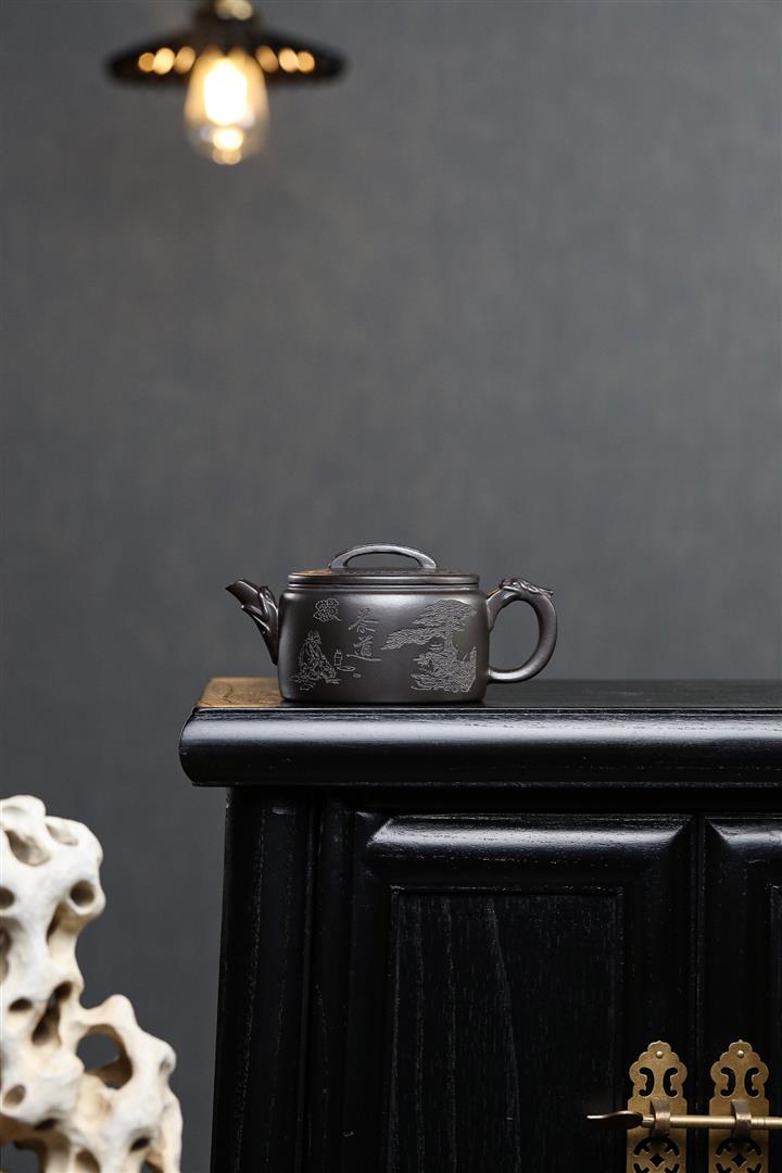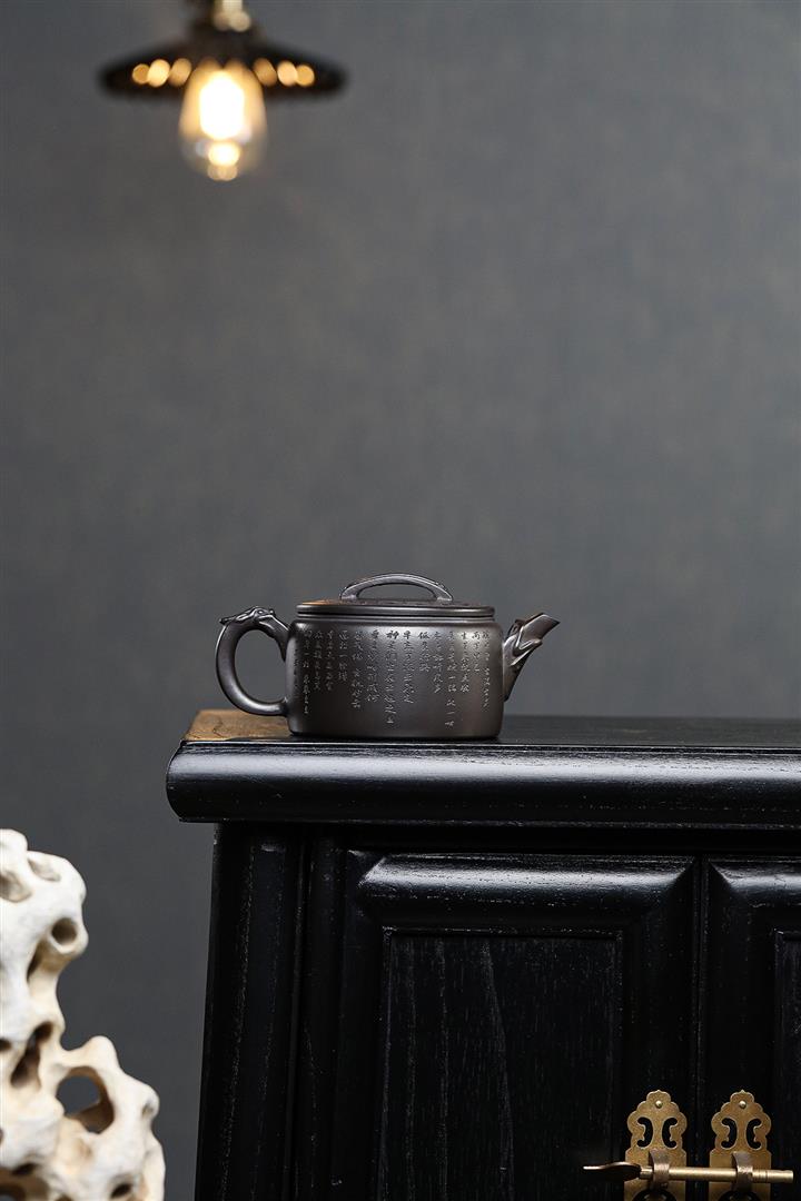 原礦青灰段泥四方竹韻紫砂壺POT4676