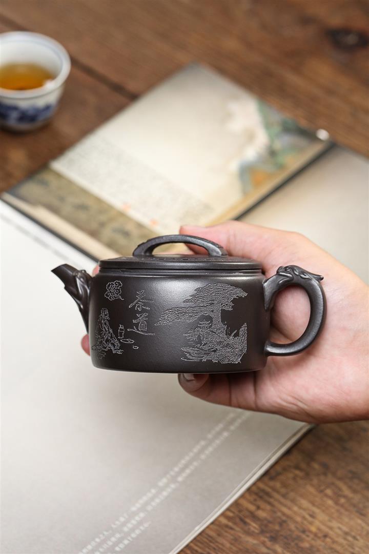 原礦石黃料茶道漢瓦紫砂壺POT4673
